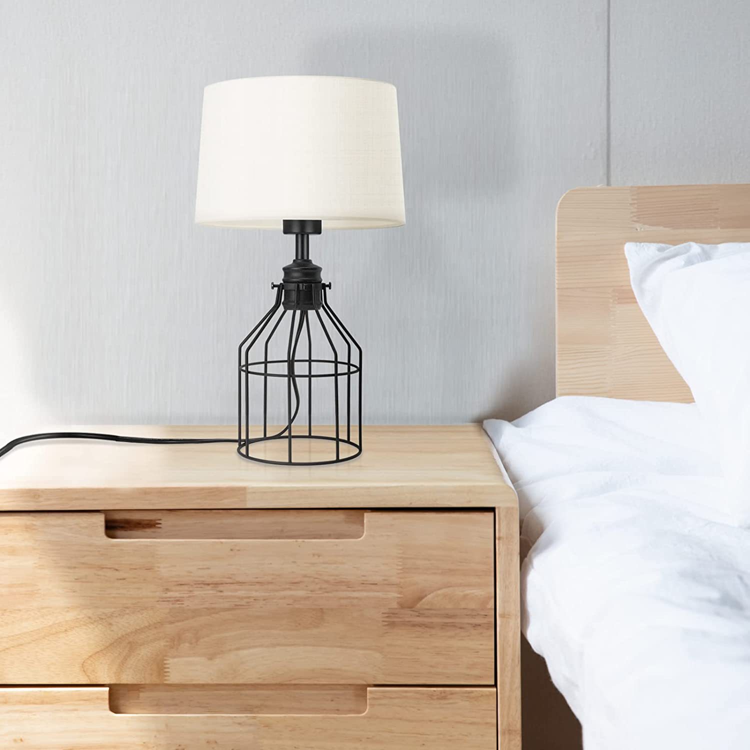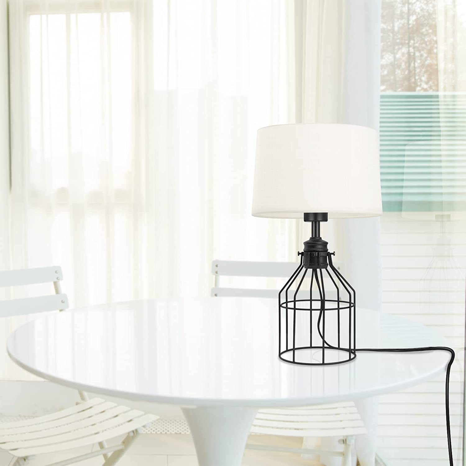 Features: This farmhouse lamp comes with a black geometric metal basket base and a fabric shade, making it compatible with both farmhouse and minimalist, bohemian, or mid-century decor.
