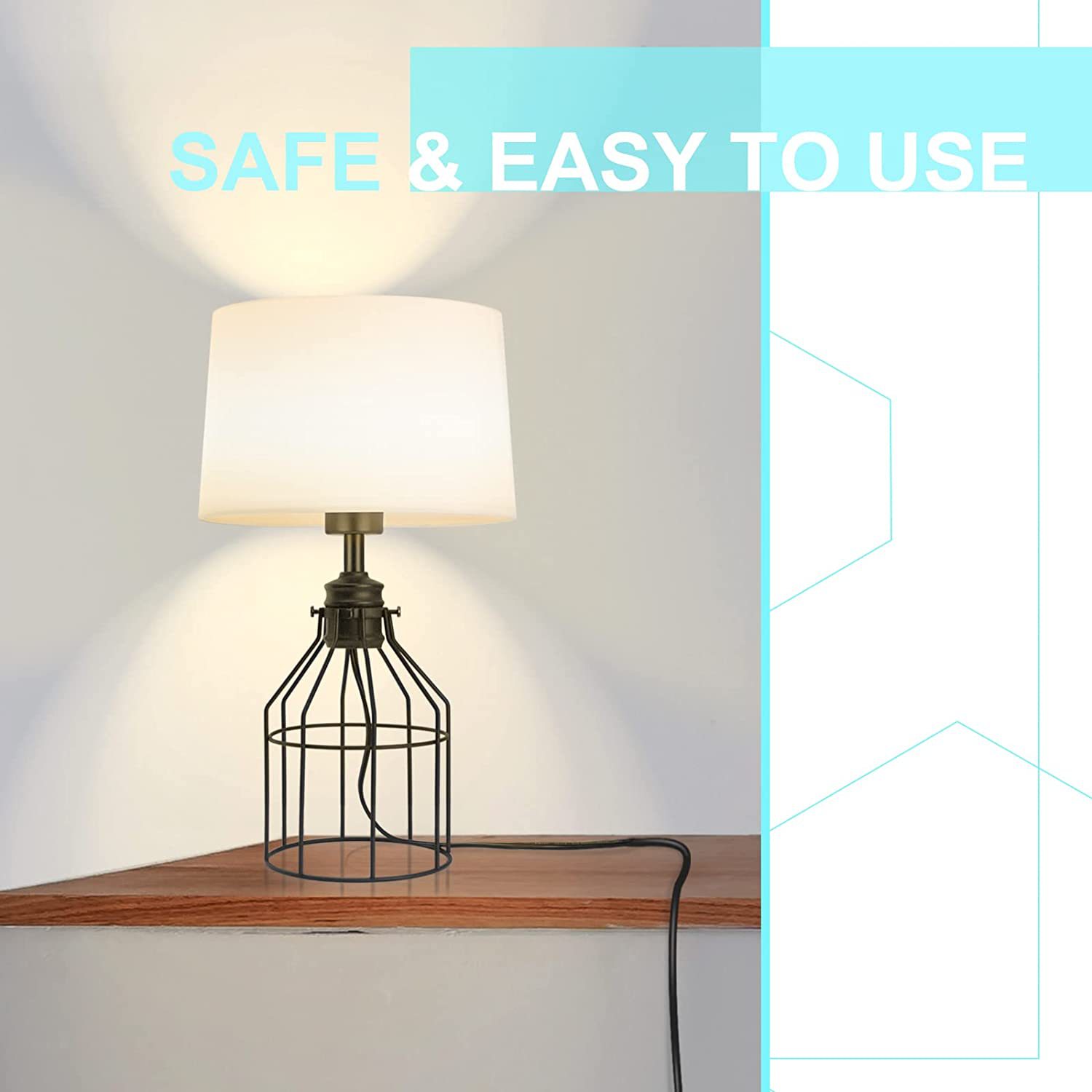 Easy to use: The power cord and plug of the black table lamp have passed the UL certification, and there is no safety risk. The on/off button on the black power cord is convenient to use. This is a lighter-weight lamp that can be easily moved to any place with lighting needs. Easy to assemble.