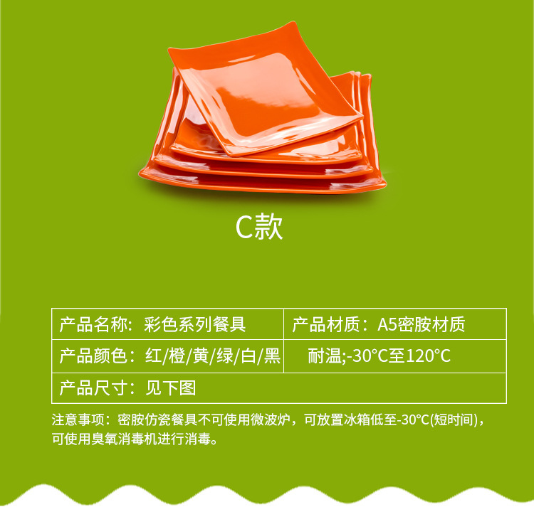 square color a5 melamine cutlery plate commercial creative plastic cold dish cold dish hotel dish snack plate 中文版
