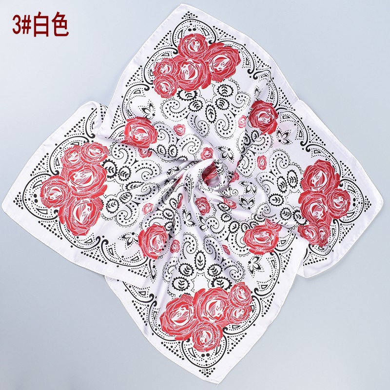 2023 Spring and Summer Red New Style Rose Pattern Printed Silk Scarf Fashion All-Matching 70 Kerchief Scarf Spot