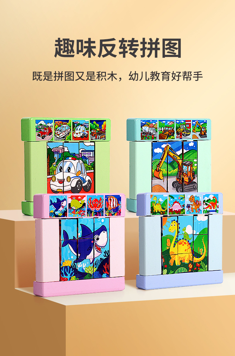 wooden children's fun intelligence game color building blocks cognitive manufacturers wholesale variety puzzle flip puzzle toys 中文版