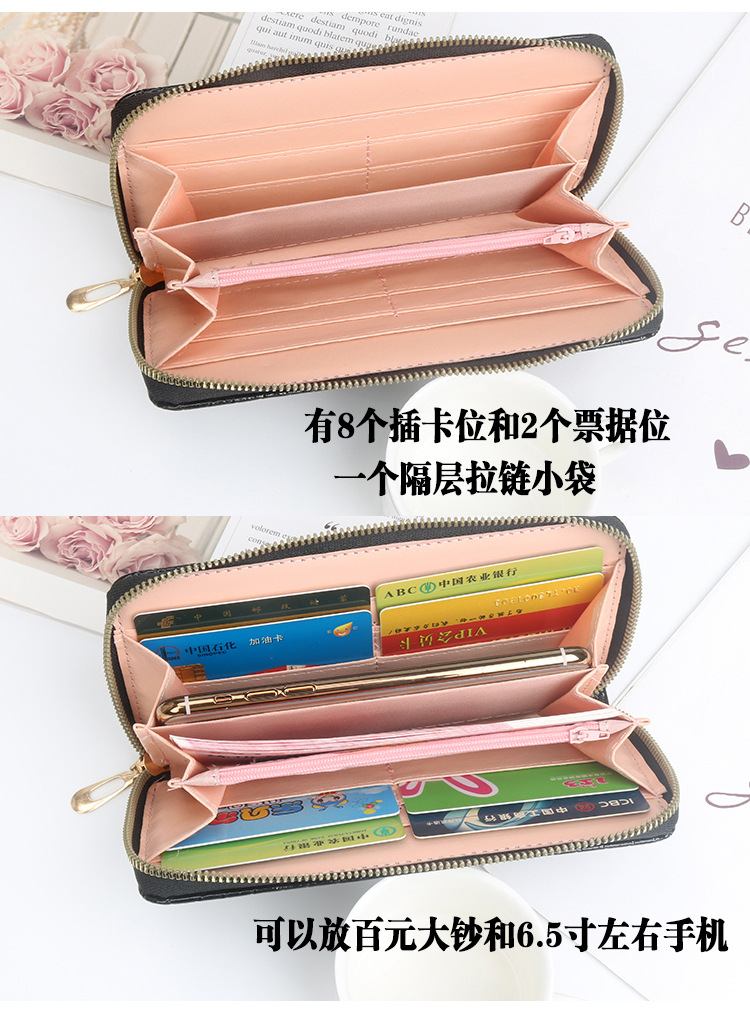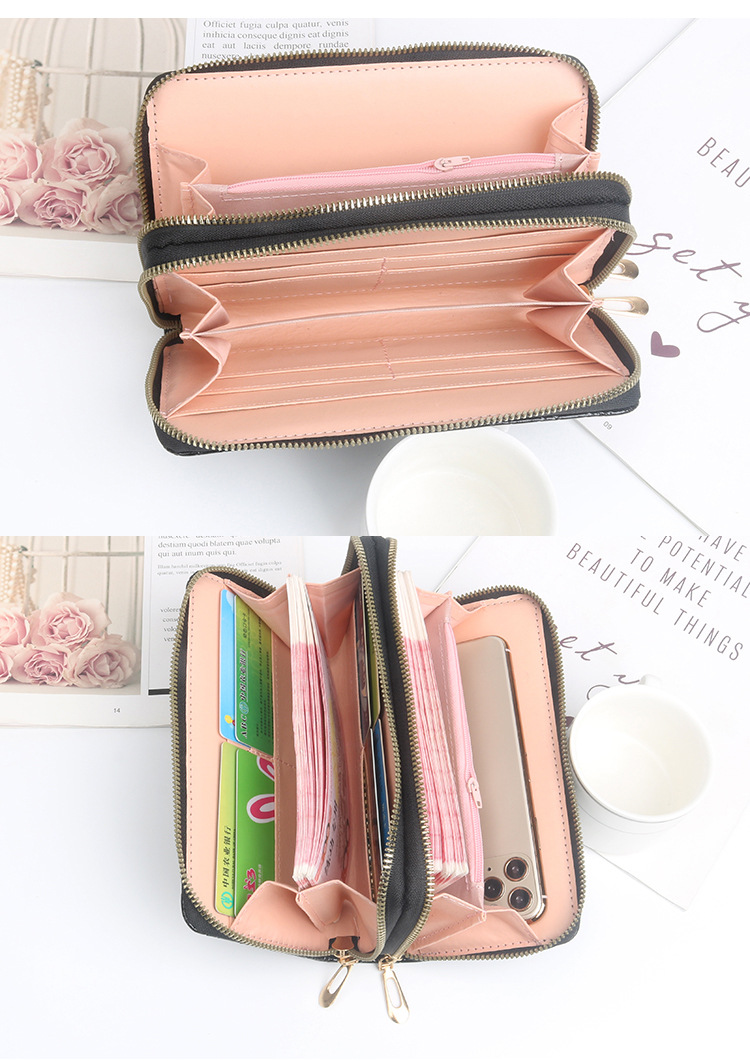 Women's Wallet New Women's Long Wallet Casual Double Zip Female Wallet Mobile Phone Bag Clutch Coin Purse Card Holder 中文版