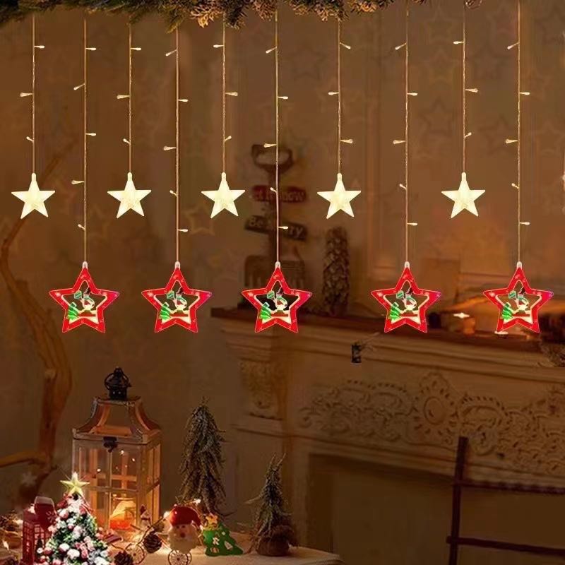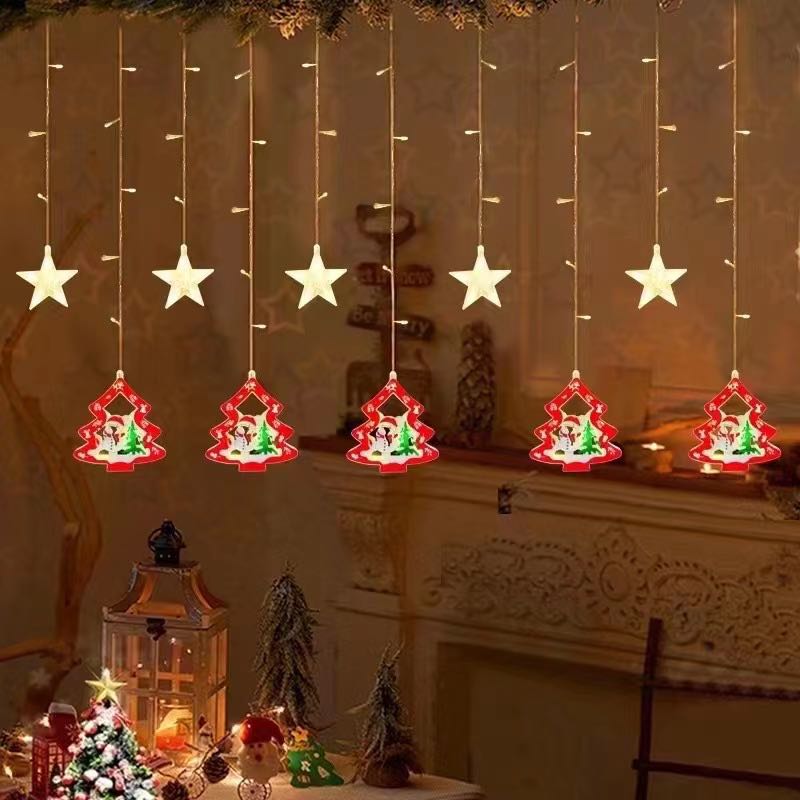 cross-border christmas new ornament led lighting chain christmas tree snowflake lights indoor room atmosphere curtain lights 中文版