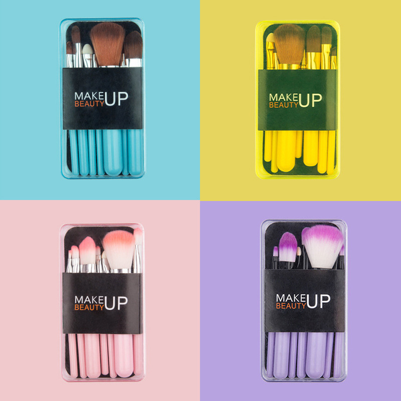 Factory Direct Cross-Border Macaron 7 Makeup Brushes Set Transparent Plastic Small Gray Boxed Portable Beauty Tools 中文版