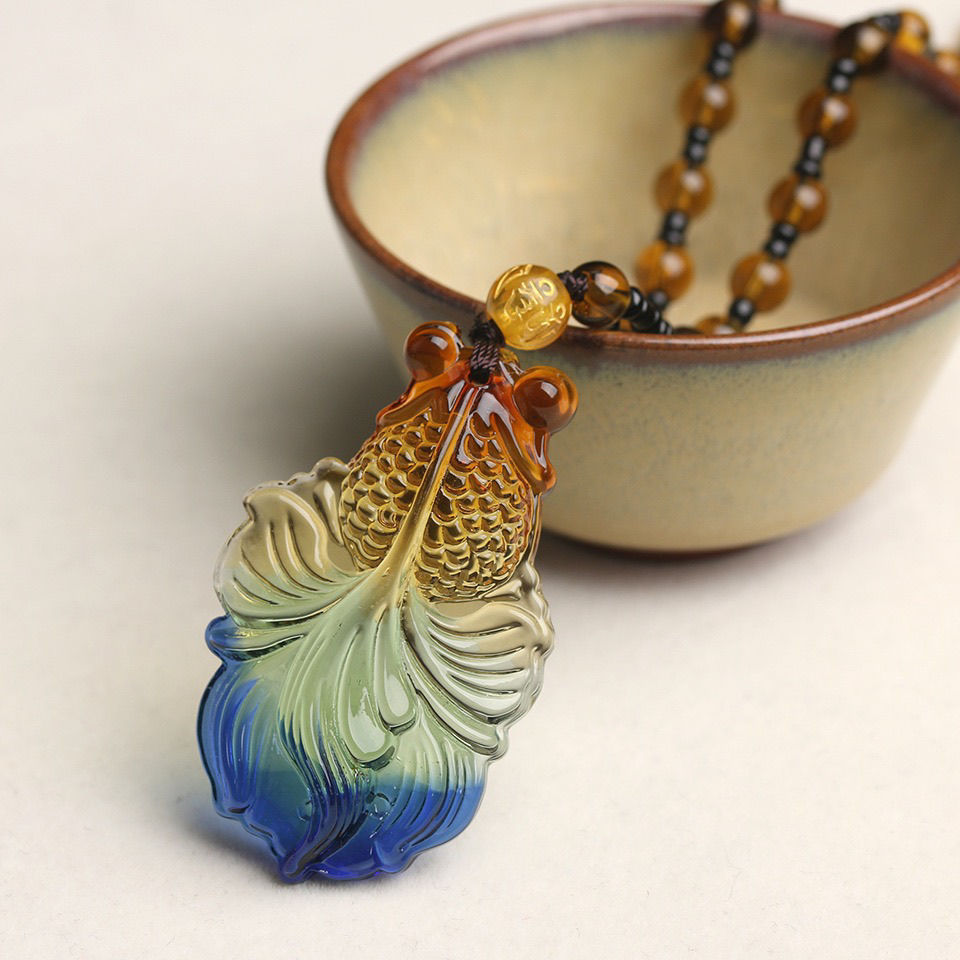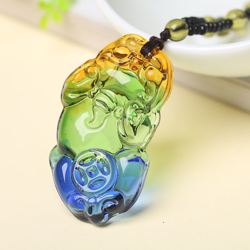 glaze yellow god of wealth necklace