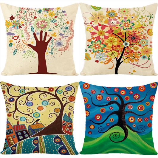 Plant Watercolor Oil Painting Trees Flowers Pillow Cover Can Be Graphic Customization Linen Printing Fashion Home Cushion Cover