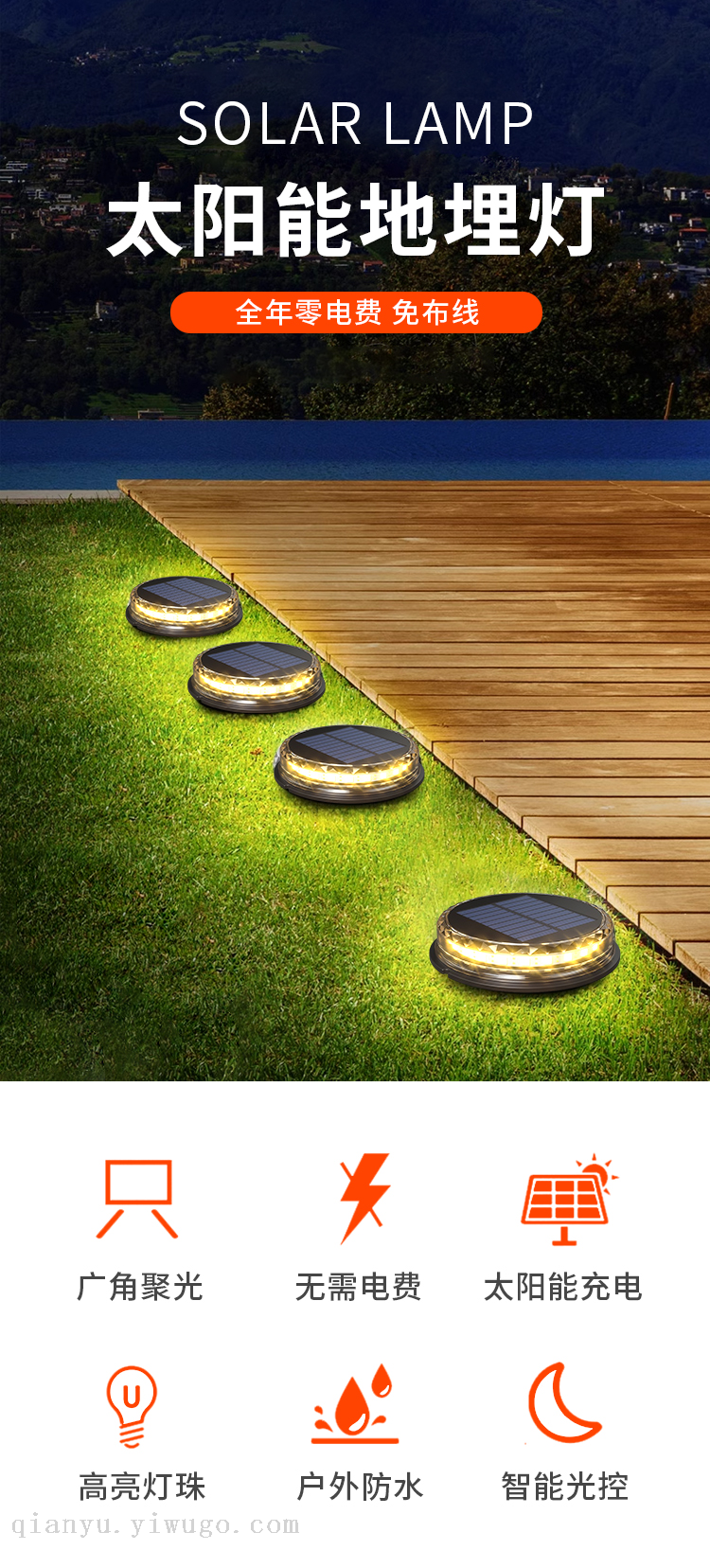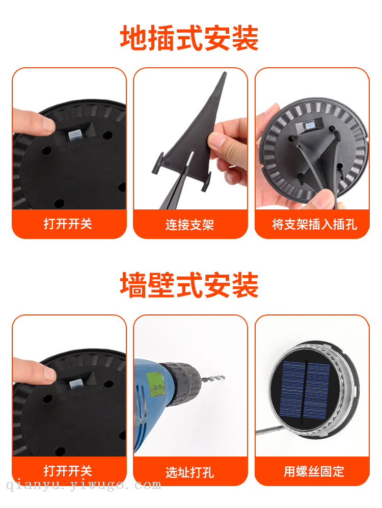 cross-border e-commerce hot sale outdoor solar led multi-color ground lamp underground lamp wall lamp 中文版