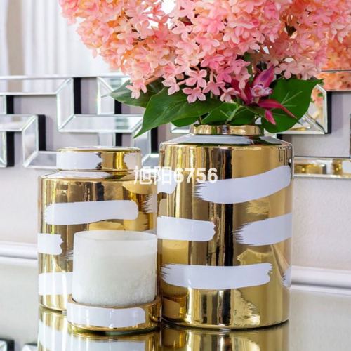 light luxury modern simple electroplating ceramic sugar pot decoration three-piece model room living room decoration home crafts h 中文版