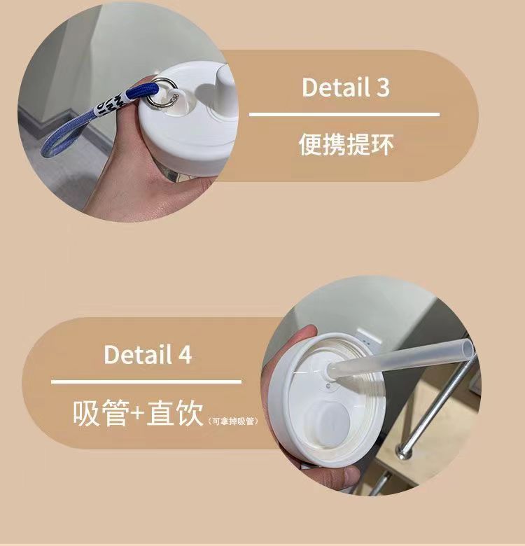 Cup with Straw Cup Large Capacity Female Good-looking Fresh Coffee Milk Tea Cup Lanyard Internet Celebrity Water Cup Portable Cup
