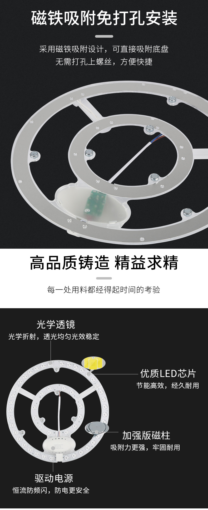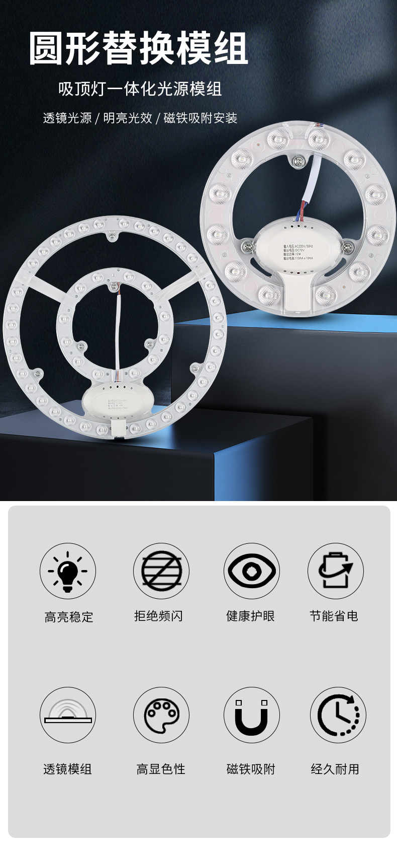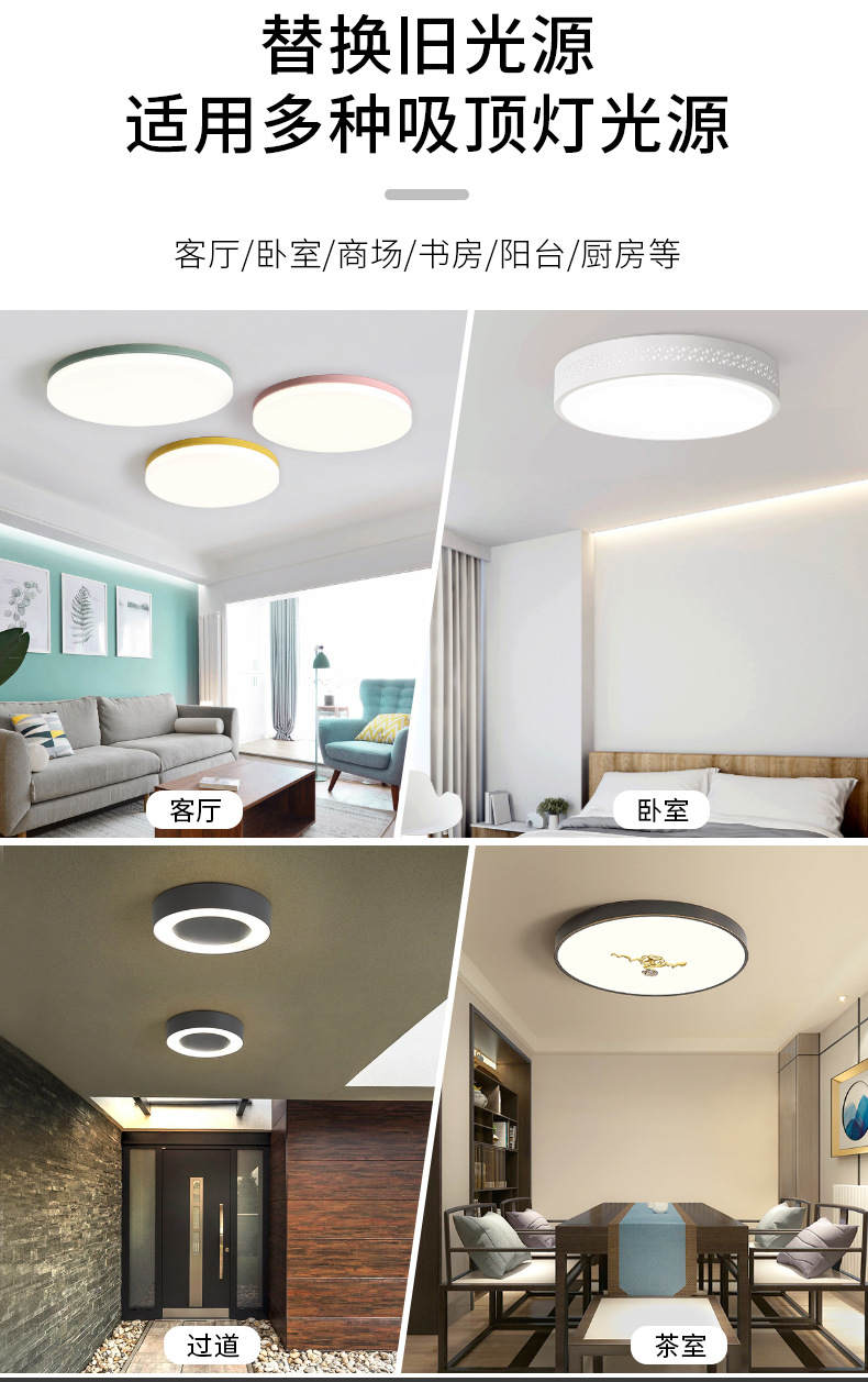 Round Iron Stone Magnetic LED Ceiling Light Module Hotel Apartment Home Monochrome Two-Color Patch Replacement Lamp Wick 中文版