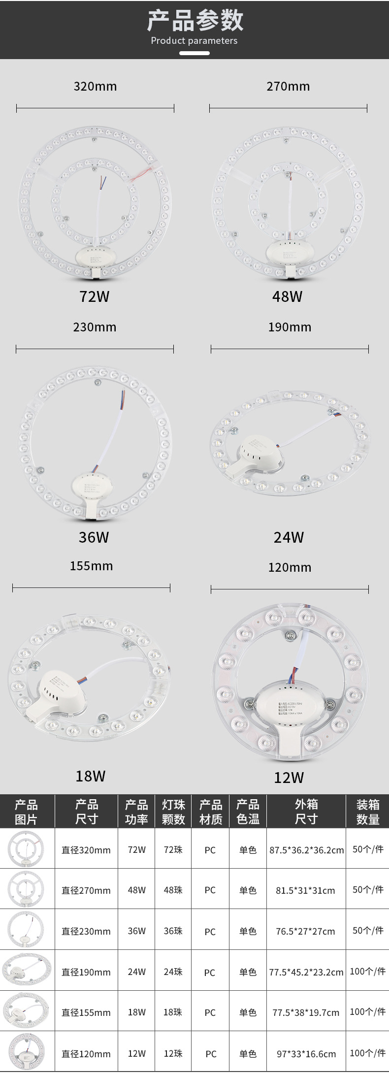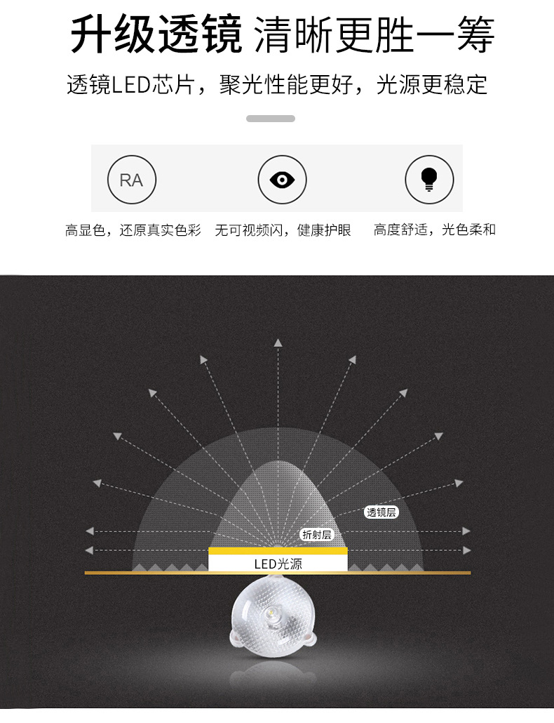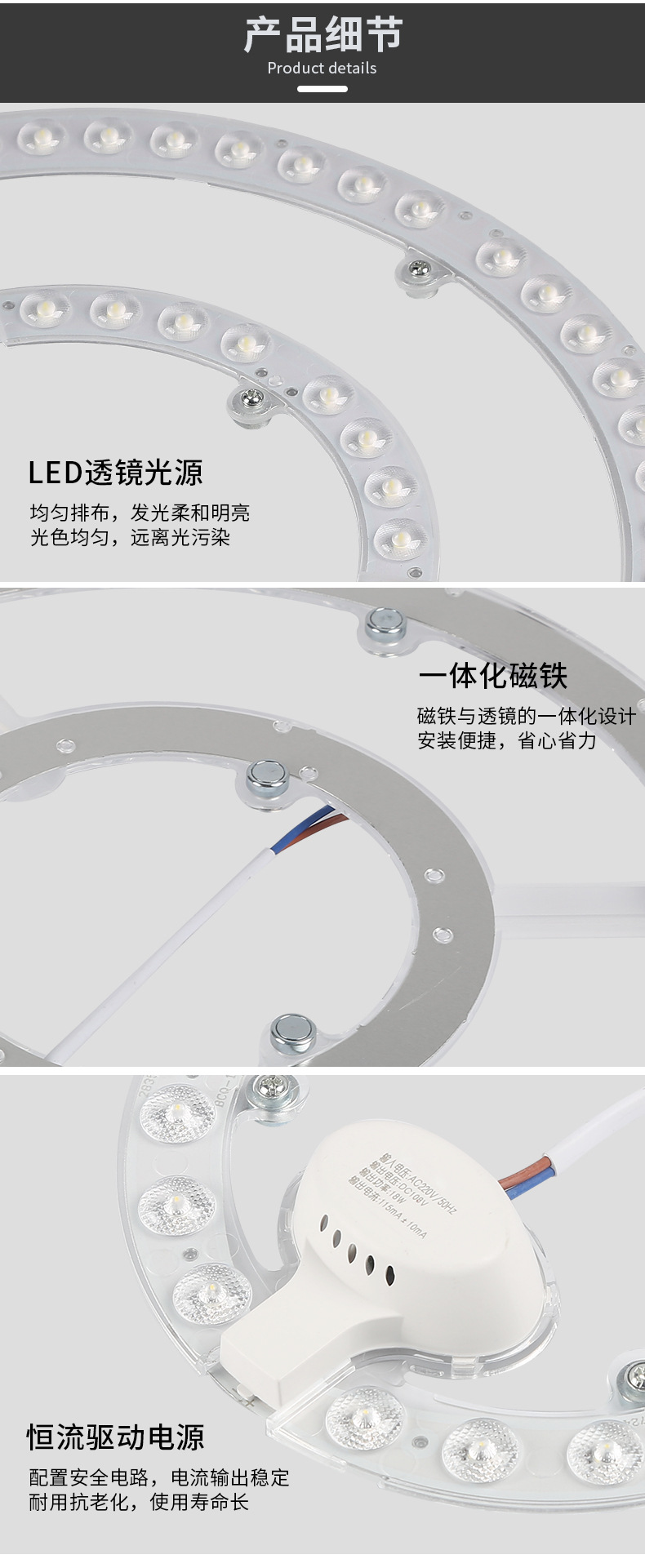 Round Iron Stone Magnetic LED Ceiling Light Module Hotel Apartment Home Monochrome Two-Color Patch Replacement Lamp Wick 中文版