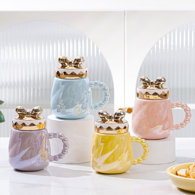 【品名】:蝴蝶结珠光釉马克杯
