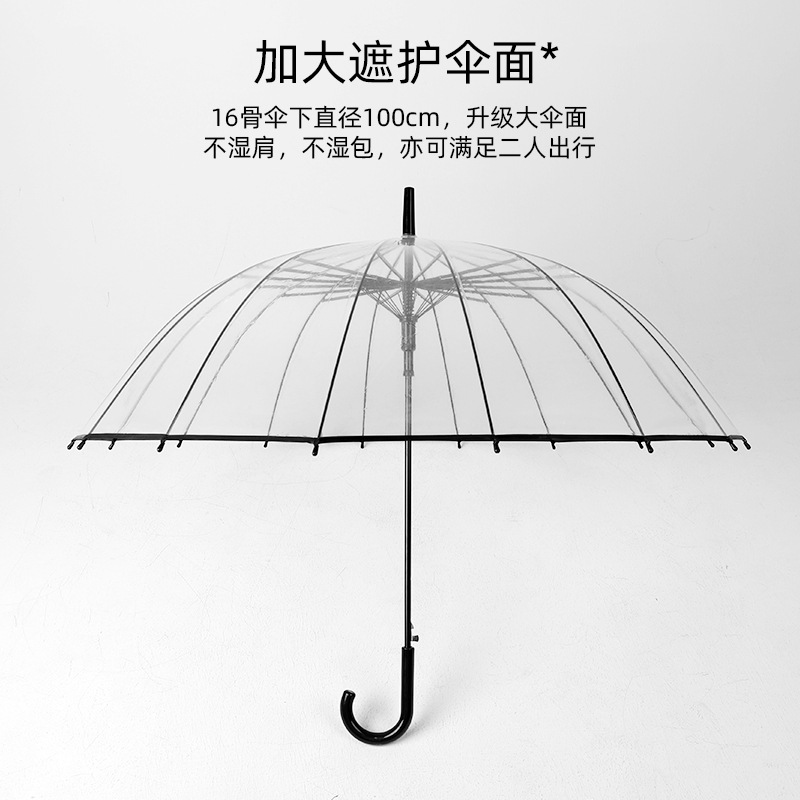 transparent umbrella 16 bone straight handle