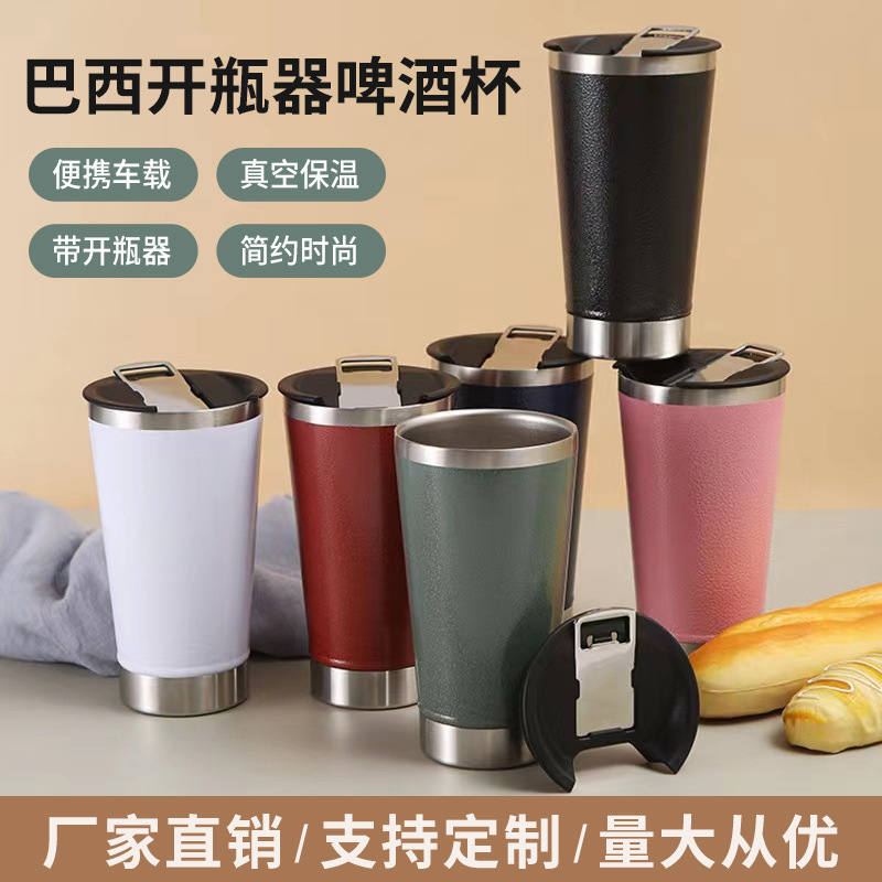 Cross-Border New Arrival 20Oz Double Layer 304 Stainless Steel Comes with Bottle Opener Beer Steins Wholesale Vacuum Car Cup 中文版
