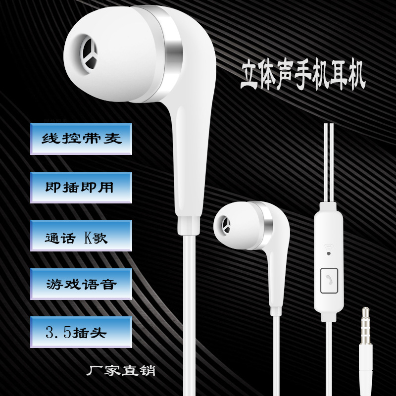 High Sound Quality Moving Coil Speaker Earbuds with Microphone Spot Neutral Wired Stereo Phone Headset 中文版