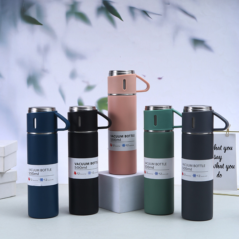 Factory Gift Box Vacuum Cup Set One Cup Three Cover Business Office Gift Cup Double Stainless Steel Water Cup Wholesale 中文版