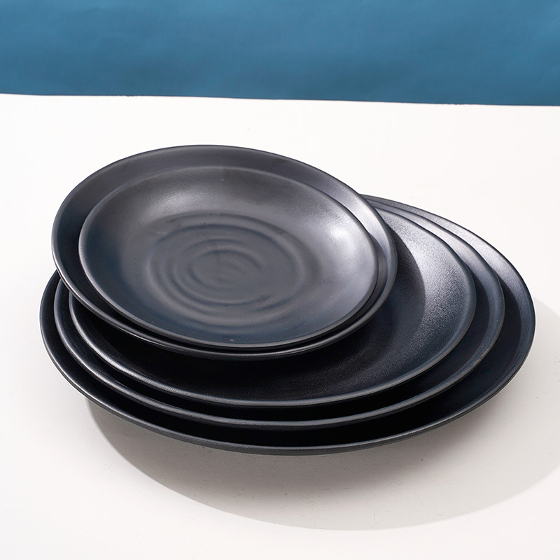 imitation porcelain melamine japanese buffet plate commercial black shallow plate plate dish round plate dish bone dish tableware wholesale
