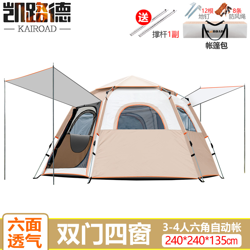 silver glue/double door four windows-large hexagonal tent. beige: (kai lude) exquisite tent 2023 new one piece dropshipping