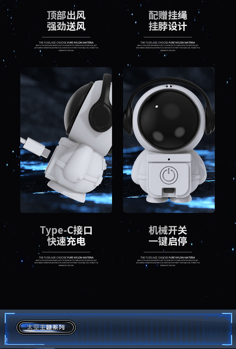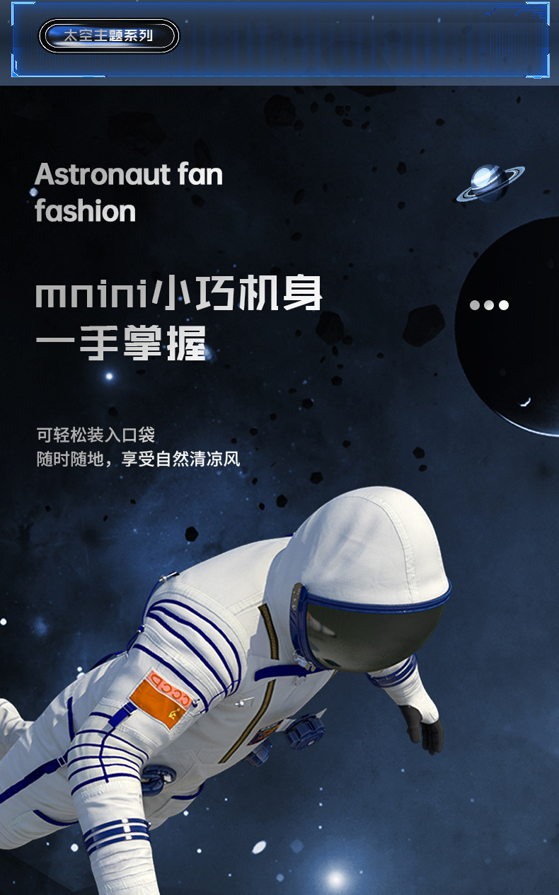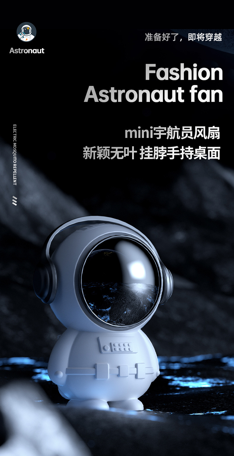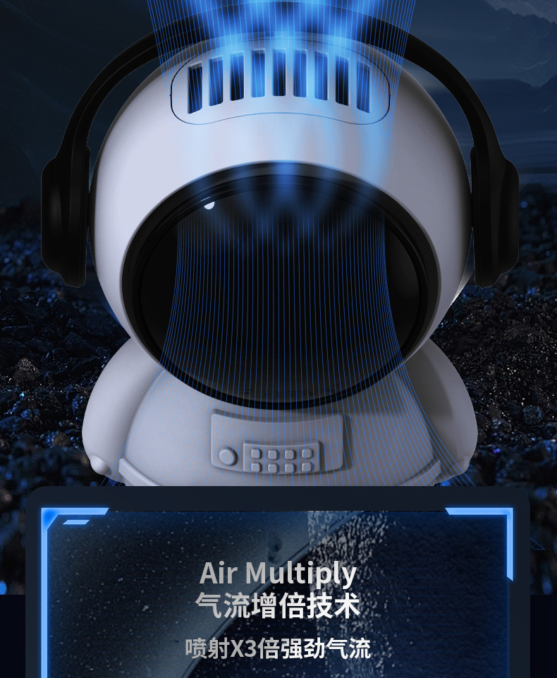 New Halter Little Fan Astronaut Desktop Rechargeable Fan Portable Leafless Mute Mini Spaceman Handheld Stool 中文版