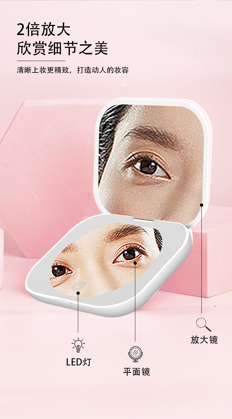 square double-sided pocket mirror (rechargeable)