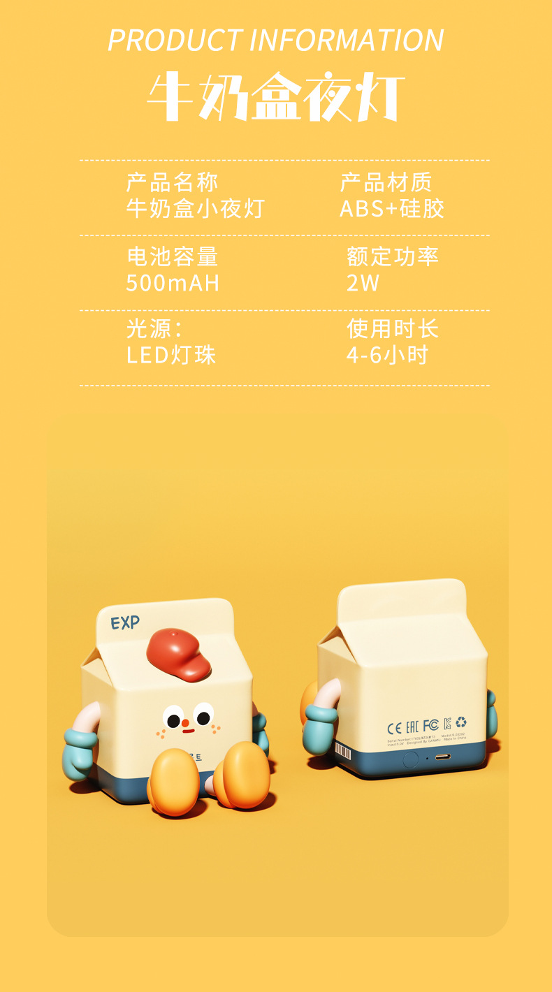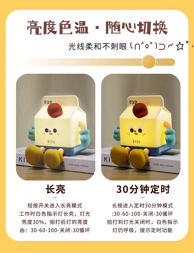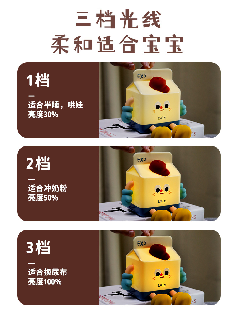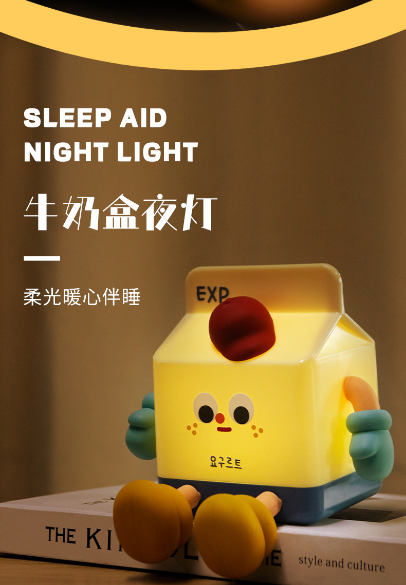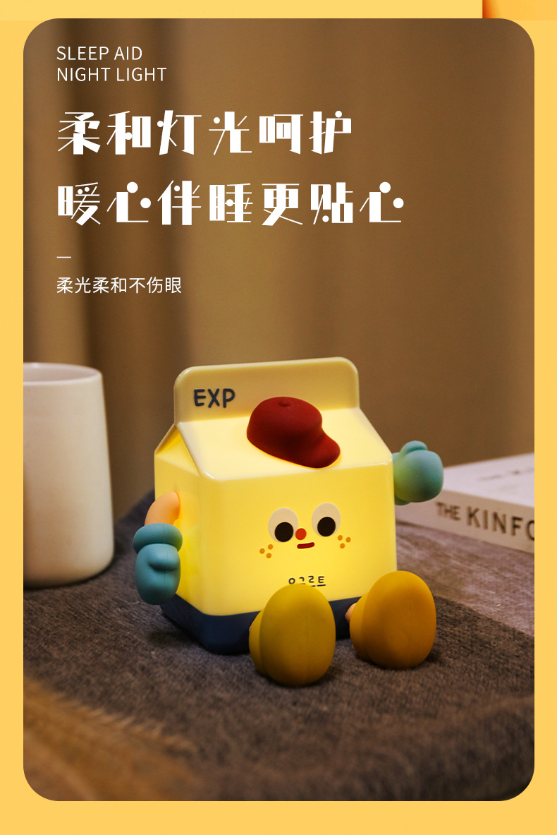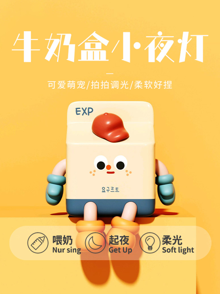 milk carton small night lamp cartoon cute ornaments mobile phone holder charging bedroom birthday gift creative gift night light 中文版