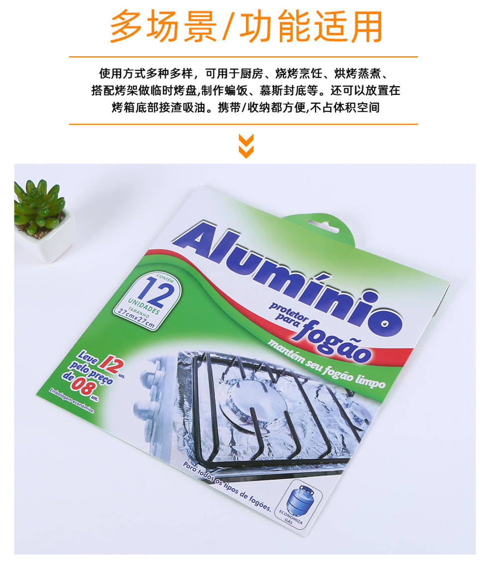 产品名称:厨房煤气灶用铝箔纸炉灶铝垫防油垫炉灶锡纸圈 耐高温防油污渍垫
