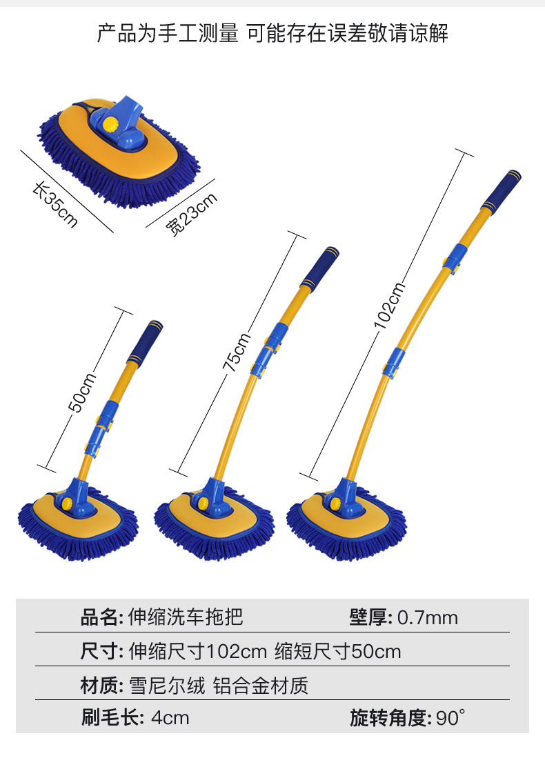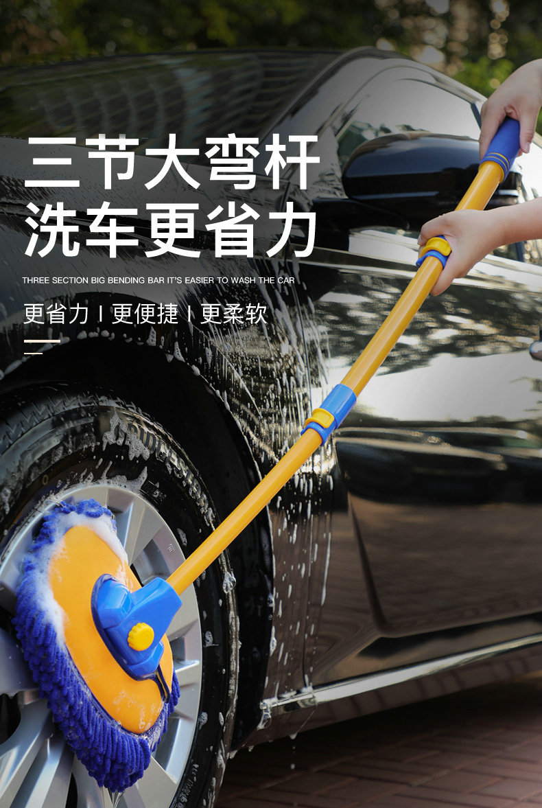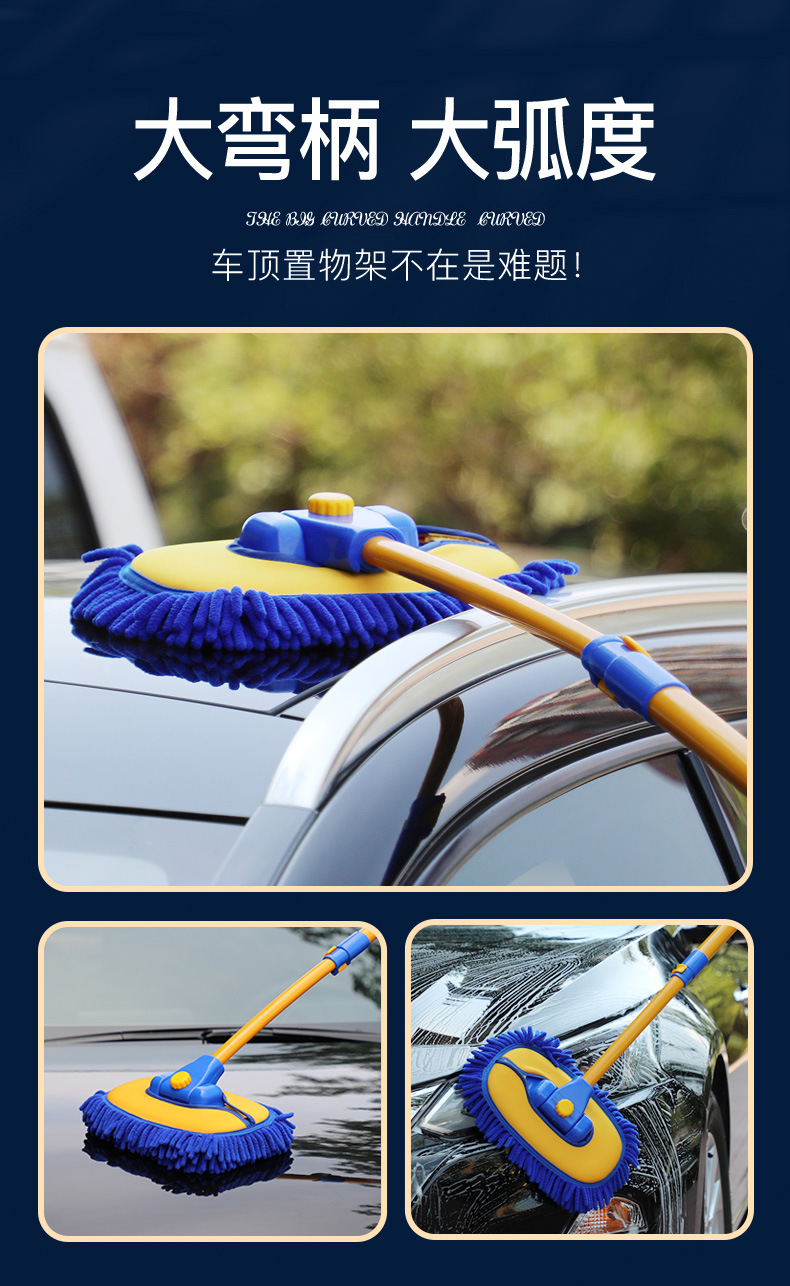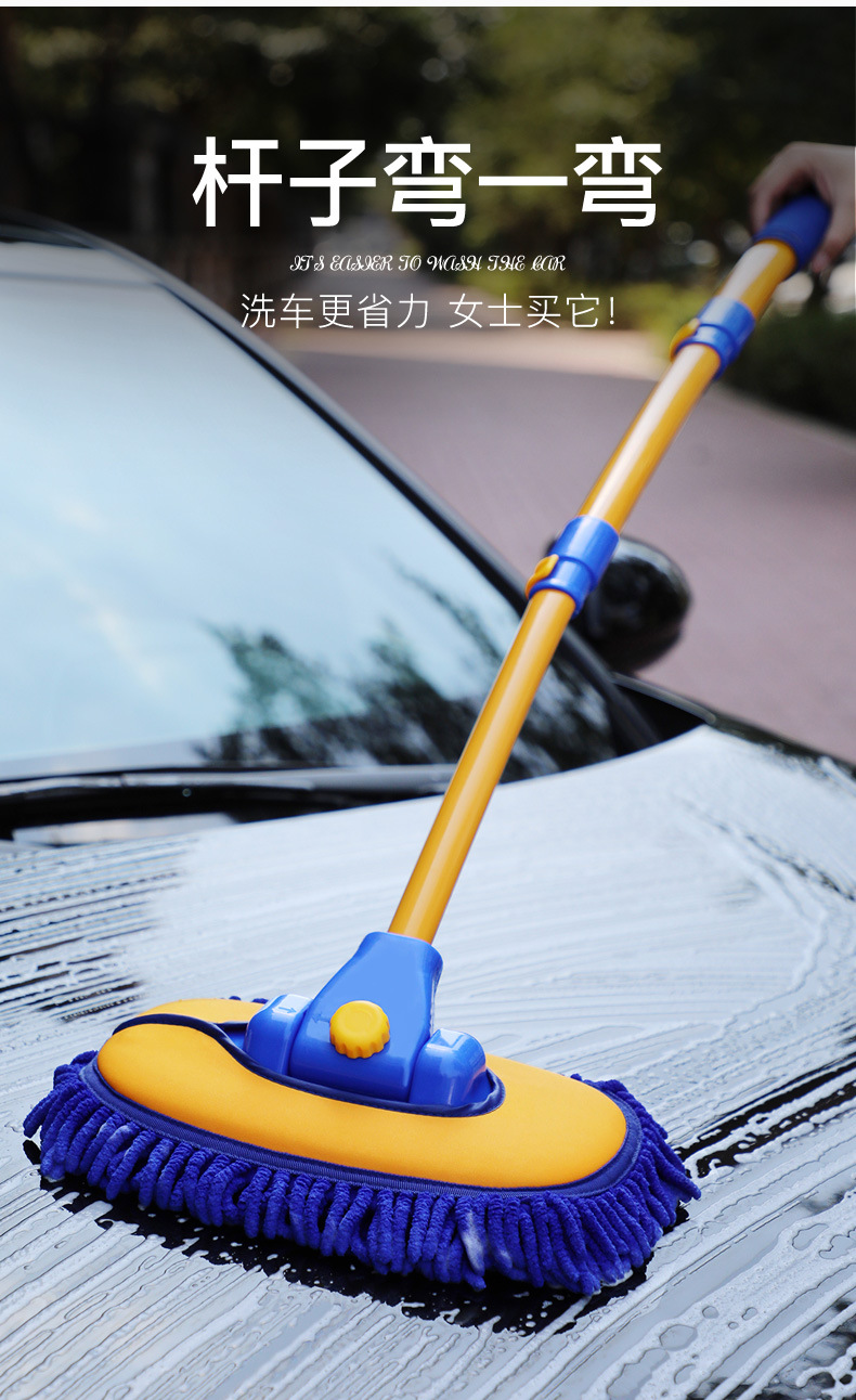 Retractable Curved Rod Car Wash Mop Soft Wool Car Wash Mop Dust Duster Car Brush Cleaning Supplies