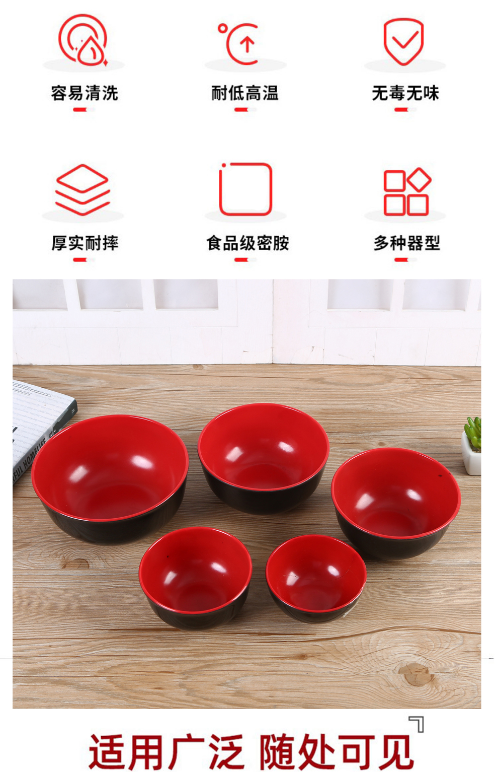 Product Name: Qingyuan Melamine Tableware - Creative Chinese Style Red Rose Series Imitation Ceramic Tableware Set for Home Use - Bowl Set