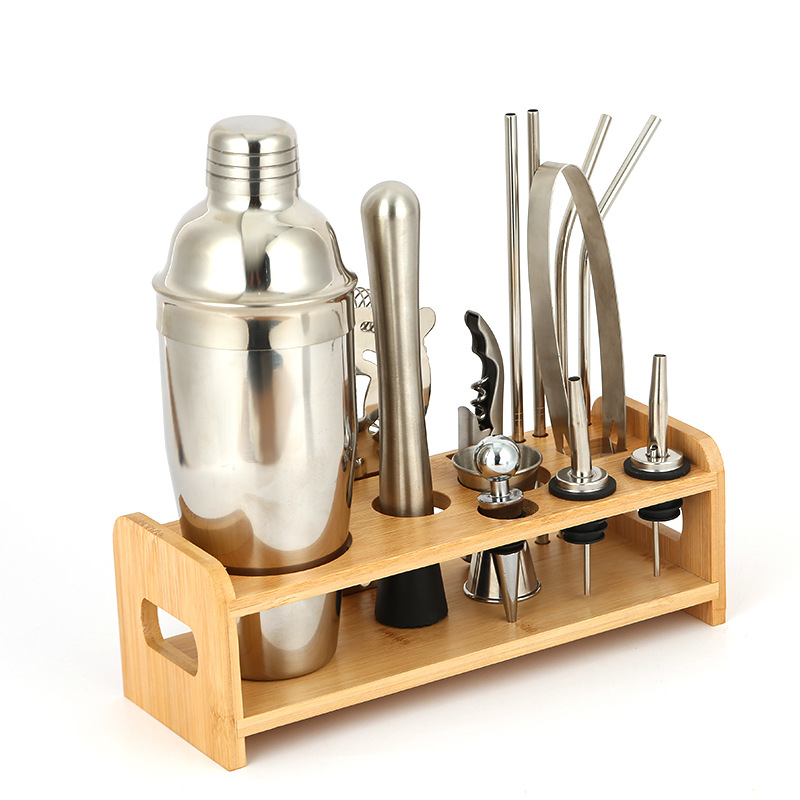 Cocktail Set Stainless Steel Cocktail Cocktail Set Shaker 13-Piece Set Bamboo Frame Suit Series Wholesale