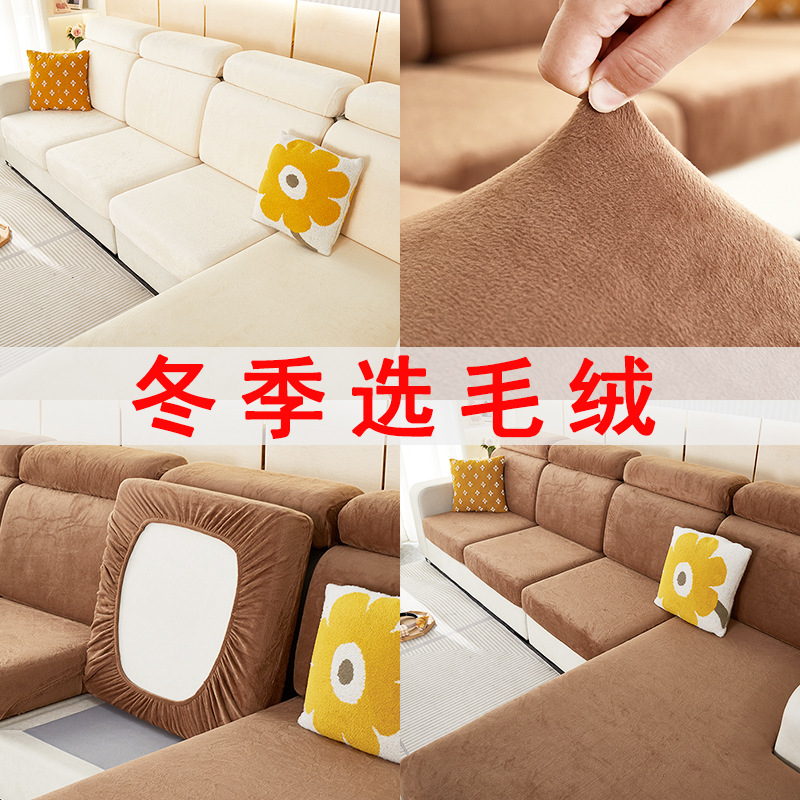Cross-Border Simple Solid Color Sofa Cushion Winter Plush Thickened Non-Slip Sofa Cover Lazy All-Inclusive Seat Cover Cover...