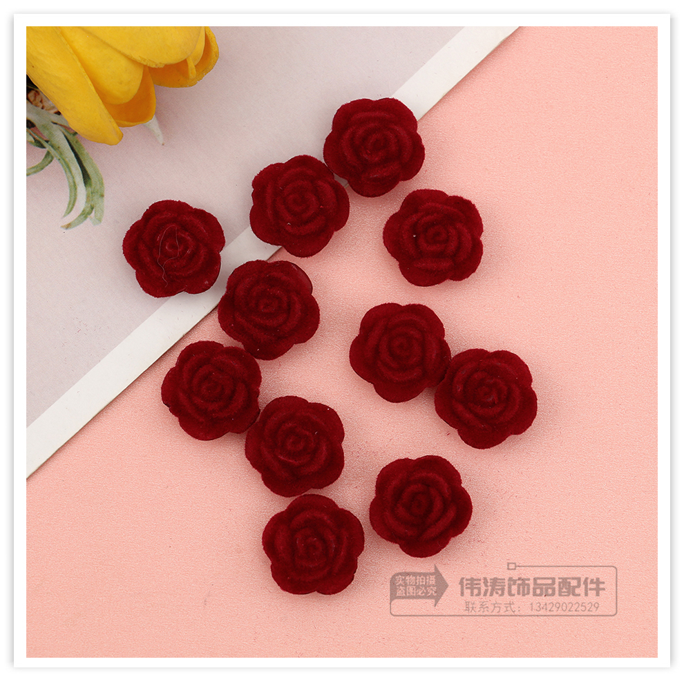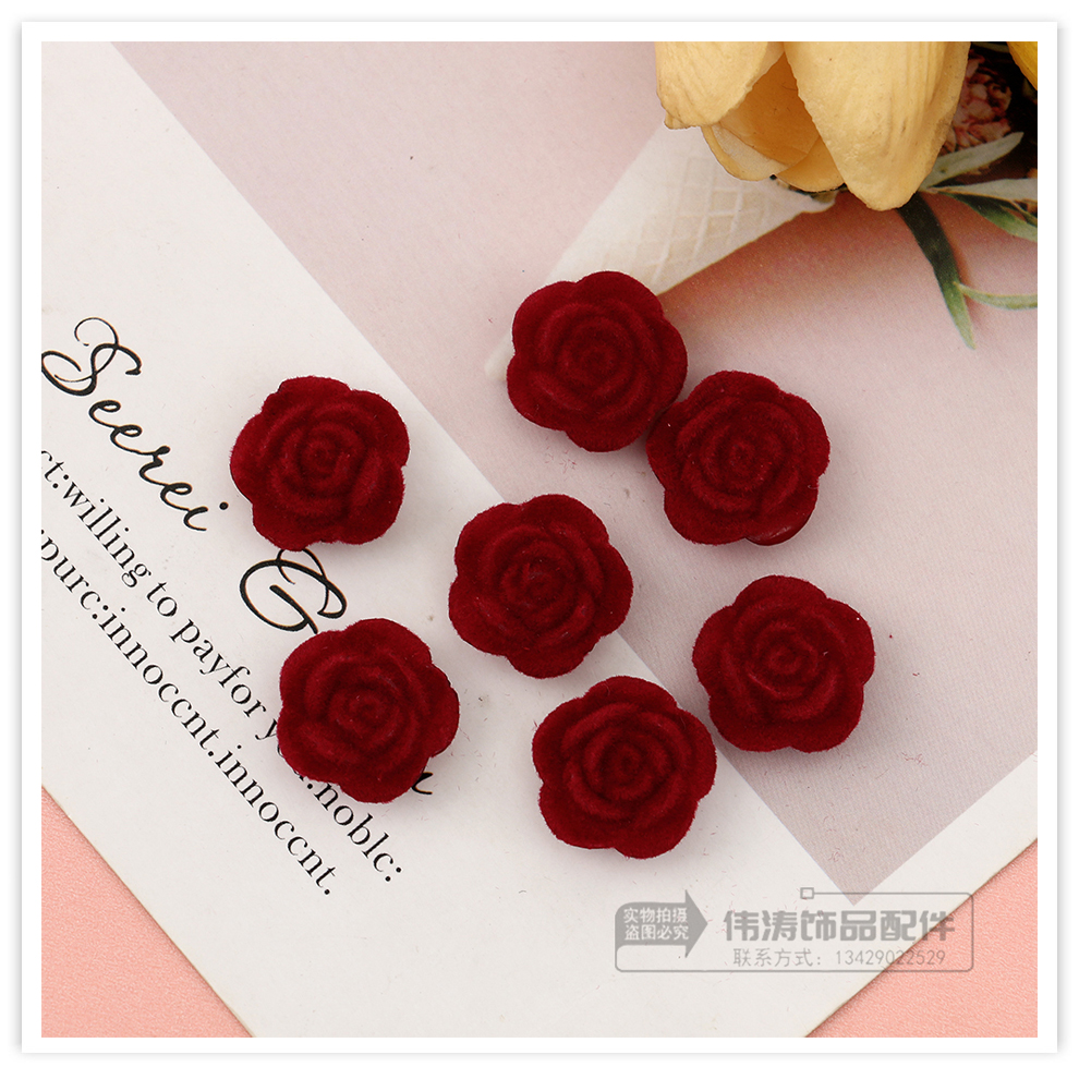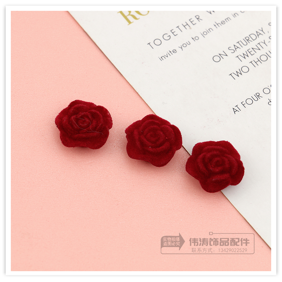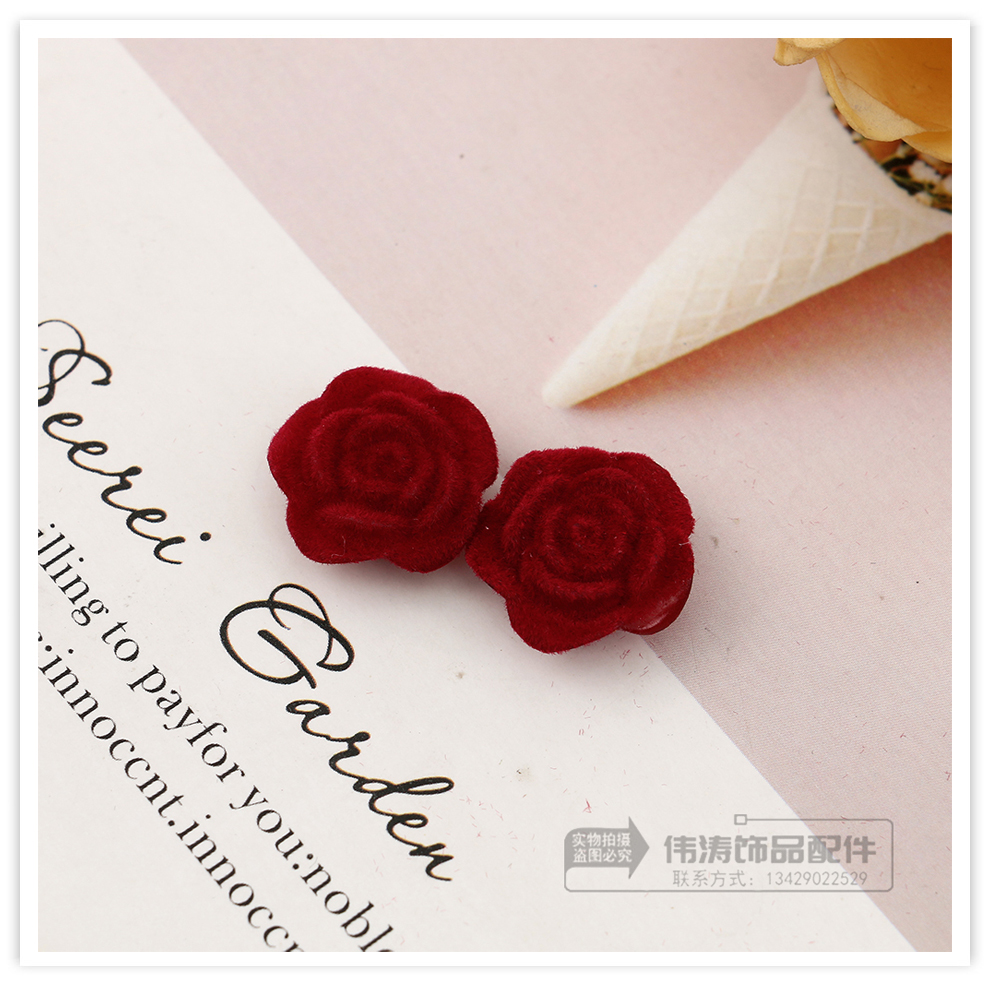 wine red flocking flower accessories women's spring and summer high-grade retro temperament earrings unique design niche ear jewelry 中文版