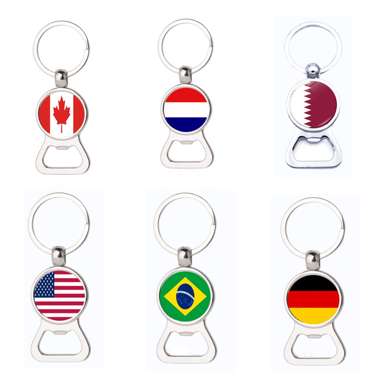 Qatar World Cup Top 32 National Flag Zinc Alloy Bottle Opener Creative Metal Corkscrew Keychain Promotional Gift