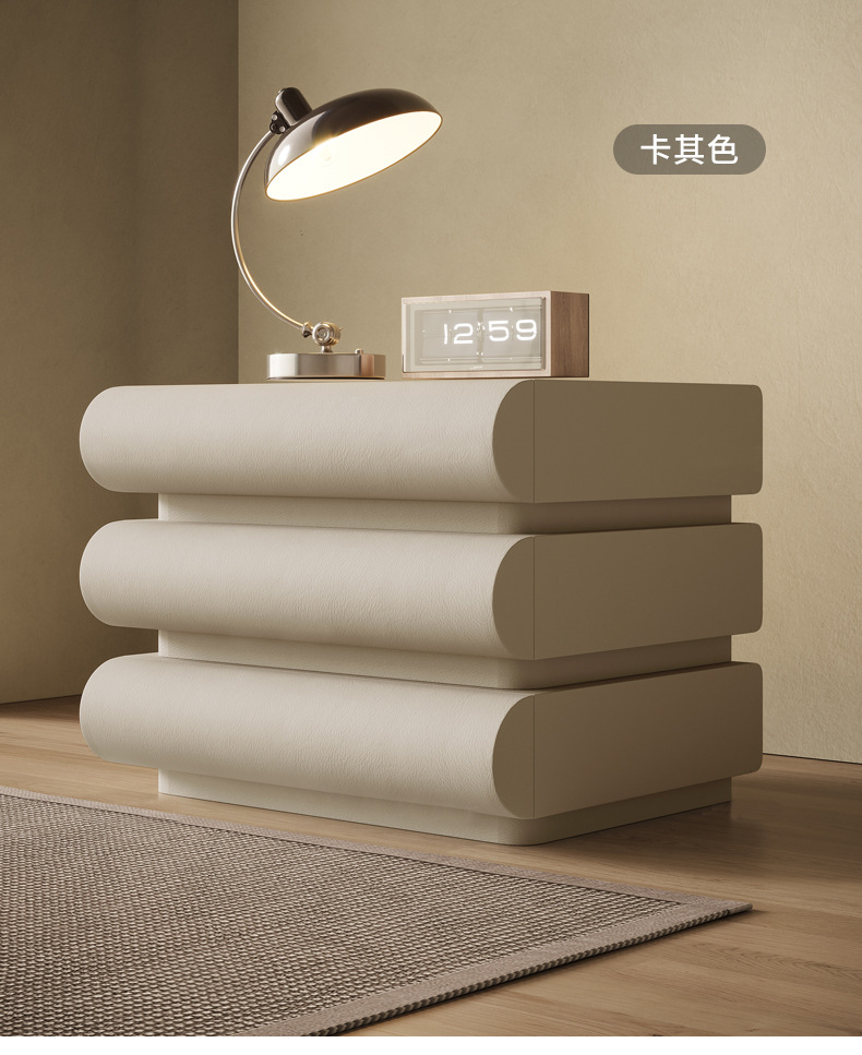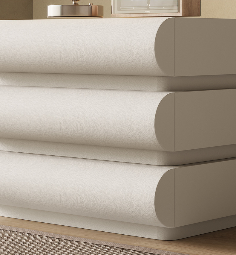 [solid wood drawer high quality pu leather] beige three drawers