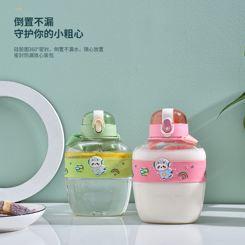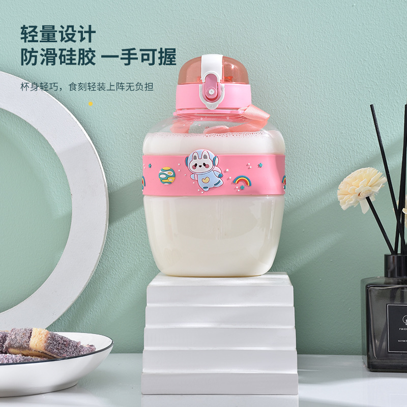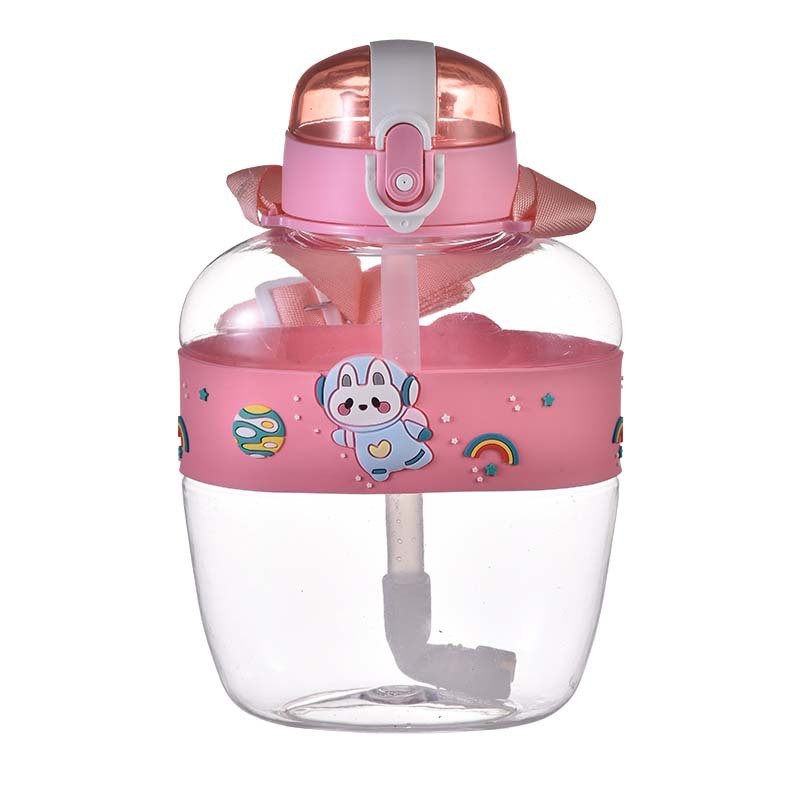 New Flat Bottle Three-Dimensional Cartoon Plastic Cup Children's Straw Cup Student Water Cup Boys and Girls Drinking Cup 900 Ml