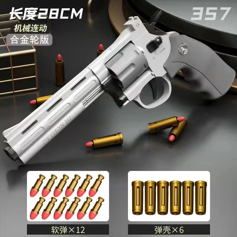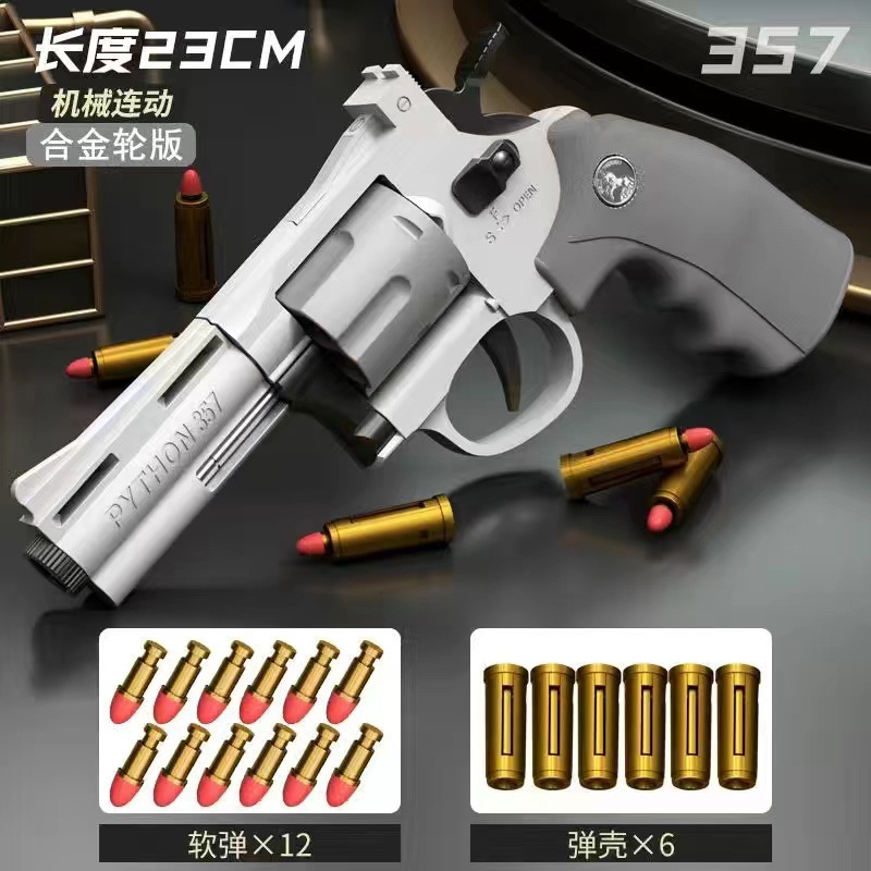 alloy wheel 357 long continuous left wheel soft bullet gun [gray white]: official standard [6 shell case 12 soft bullet]]