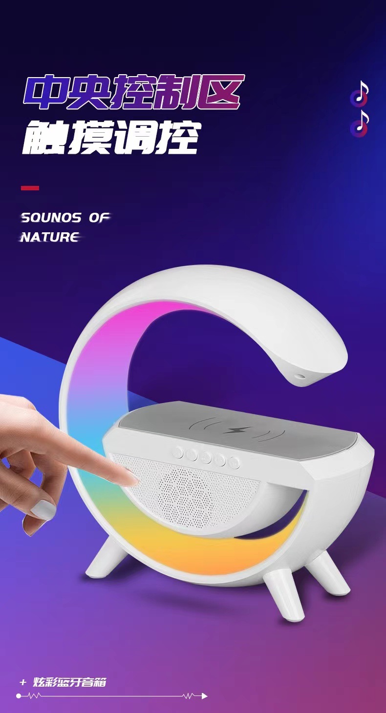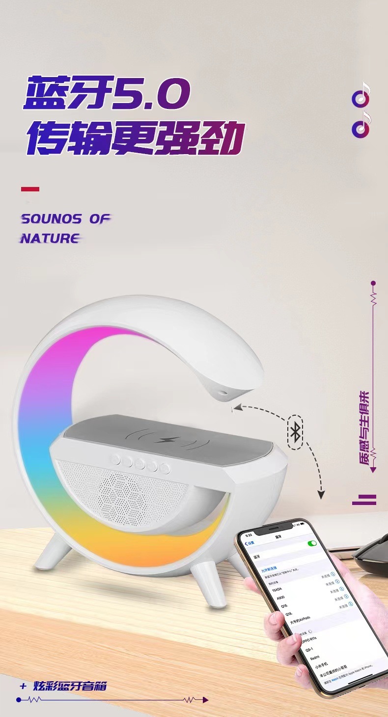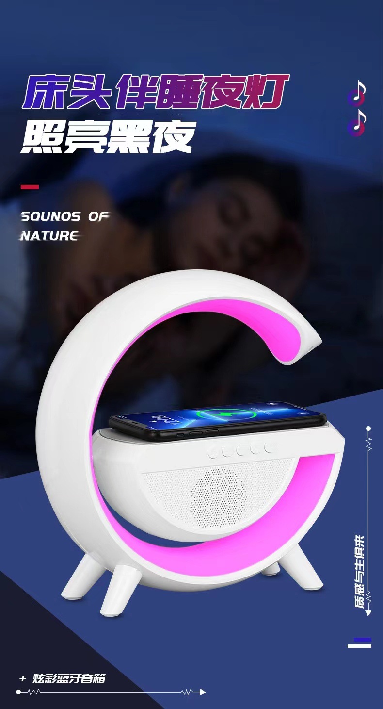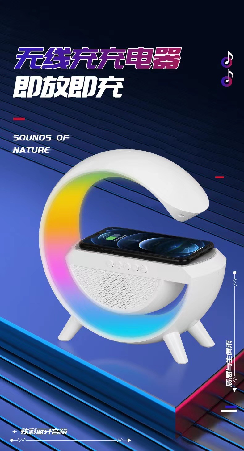 smart big g seven-color ambience light mobile phone wireless charger creative bluetooth speaker three-in-one bedside small night lamp gift