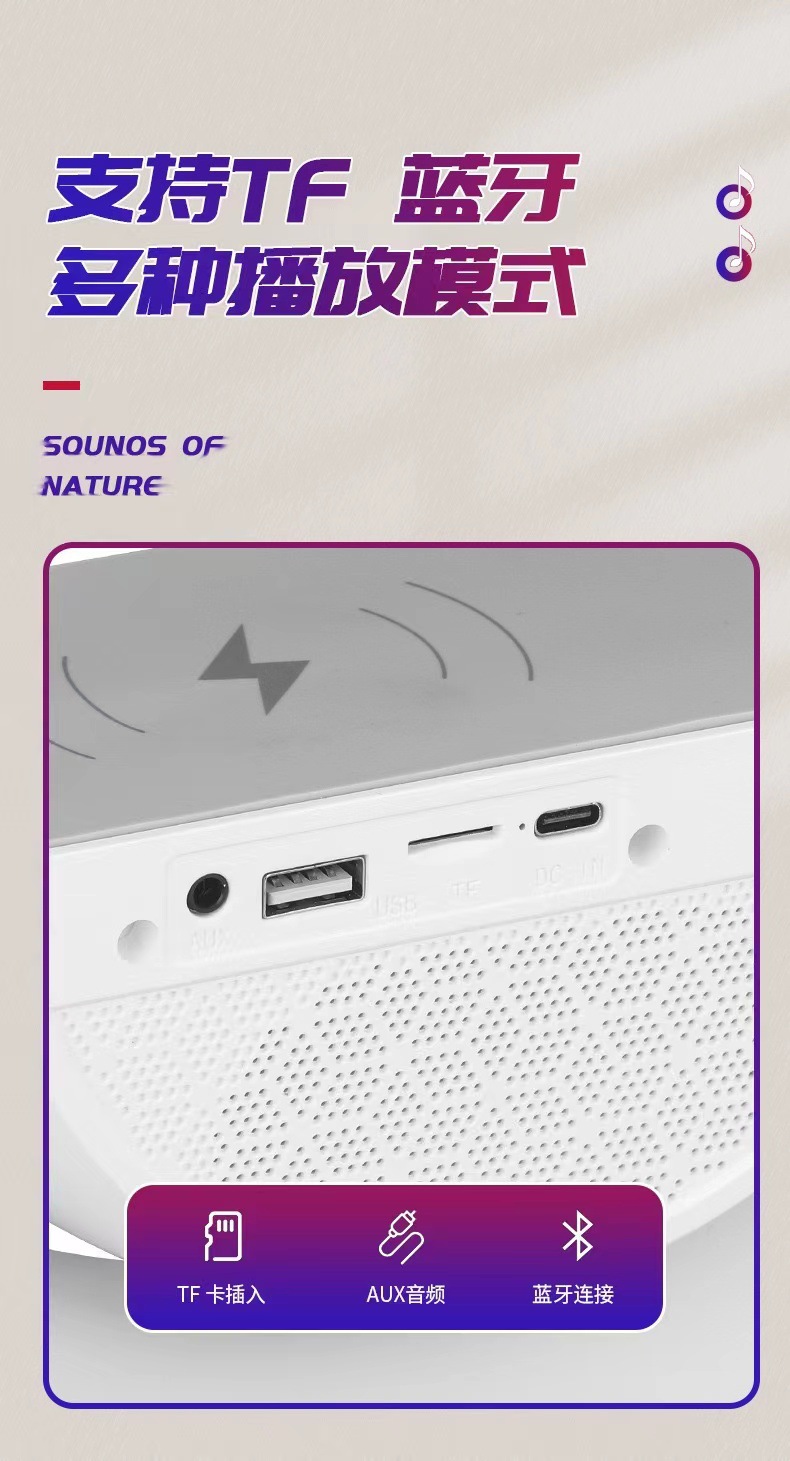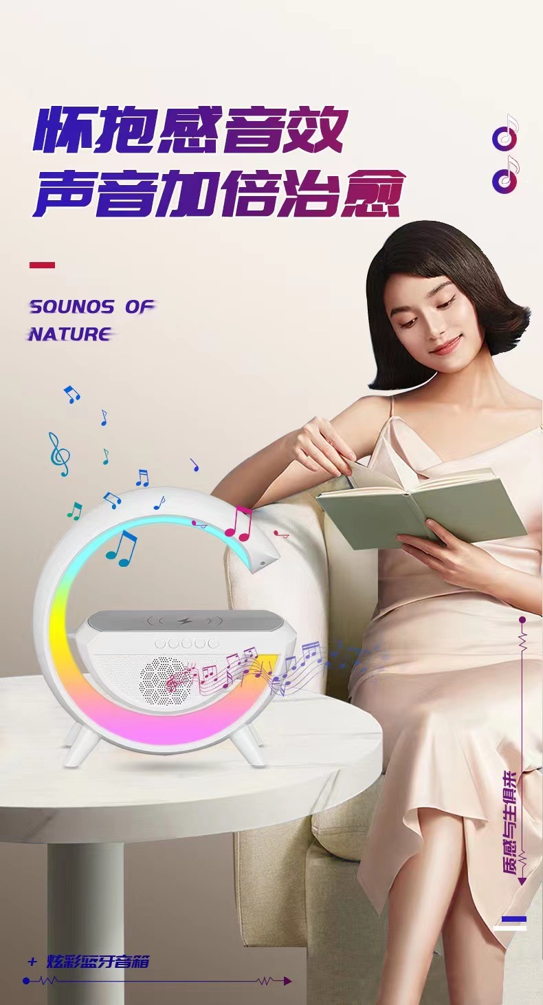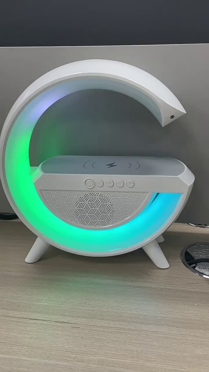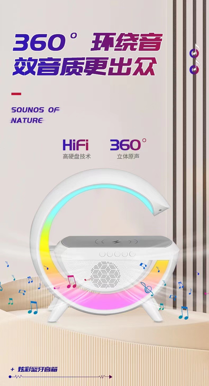 smart big g seven-color ambience light mobile phone wireless charger creative bluetooth speaker three-in-one bedside small night lamp gift