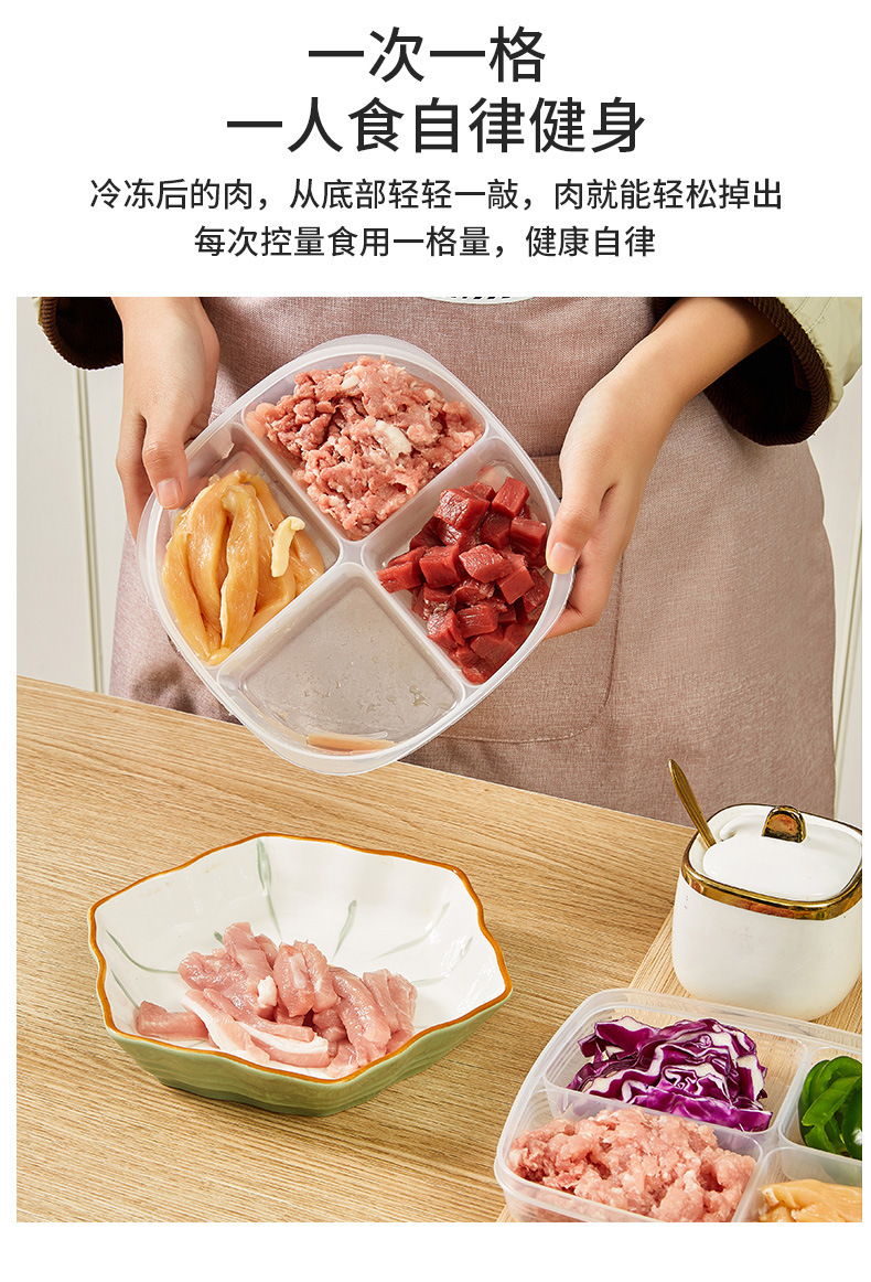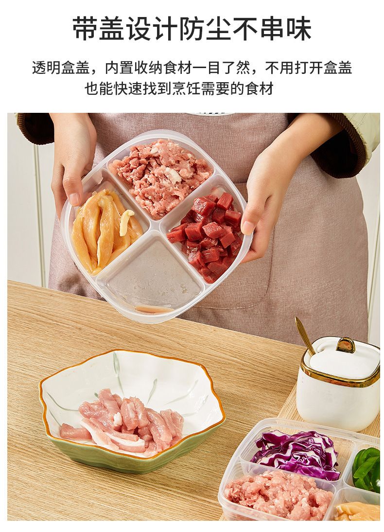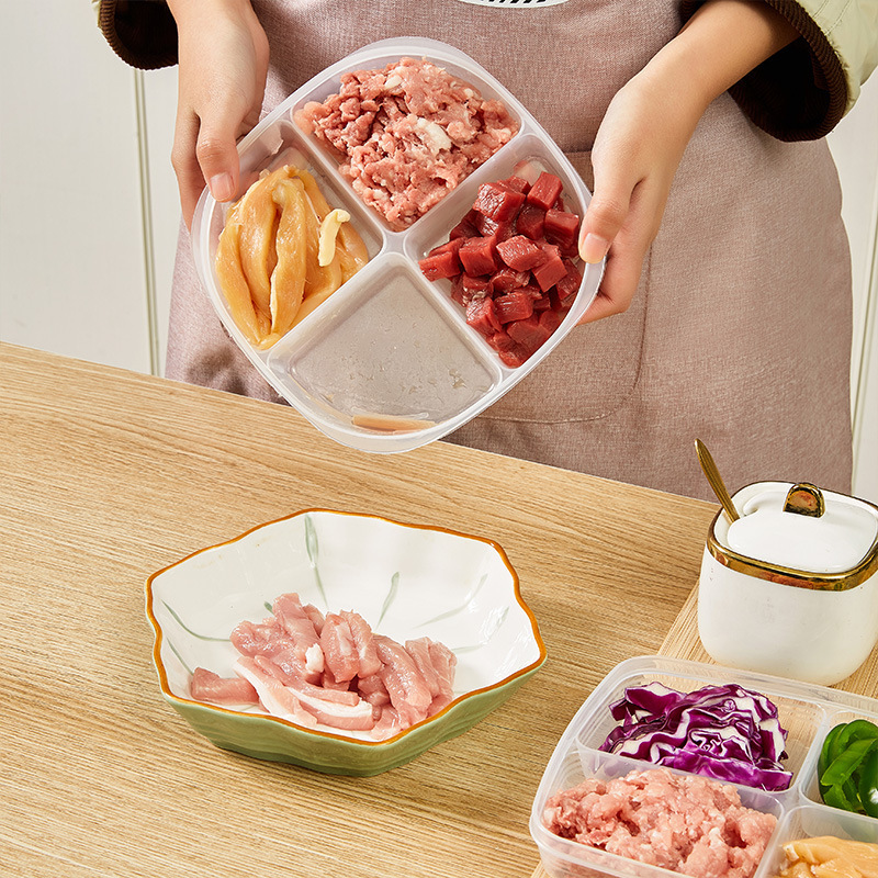 Japanese-Style Four-Grid Separately Packed Case Refrigerator Frozen Fresh-Keeping Box Transparent Storage Box Food Storage Box Separately Packed Case Wholesale