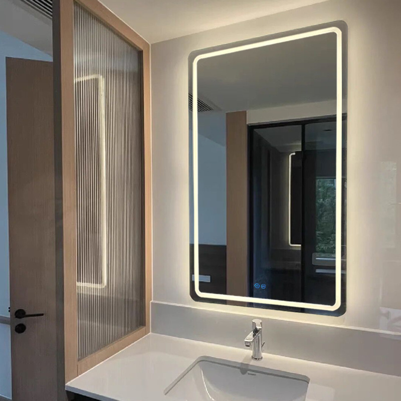 toilet led bathroom mirror anti-fog bathroom mirror hotel toilet square luminous smart mirror wholesale