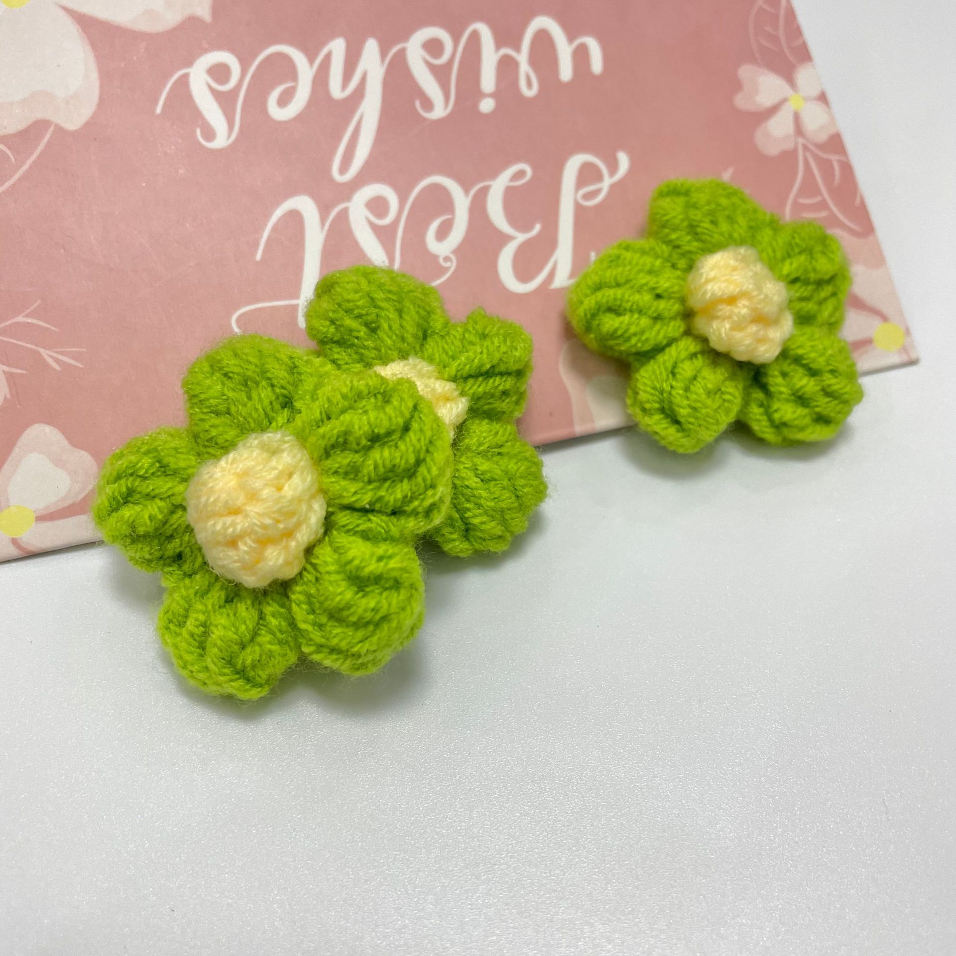 The size of the small flowers is about 4 to 4.5CM. This product is hand-knitted, so there may be some size errors. Please be careful when ordering!