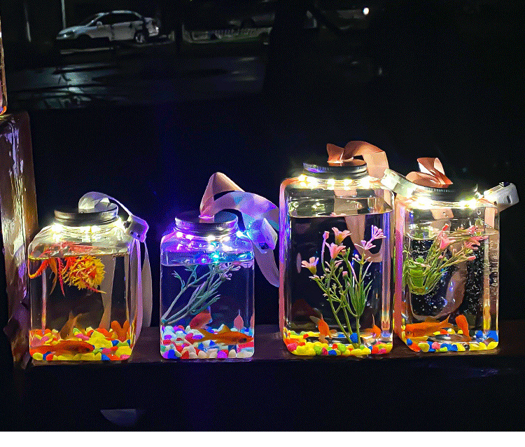 500ml-正方带孔盖:瓶灯带丝带水草彩石