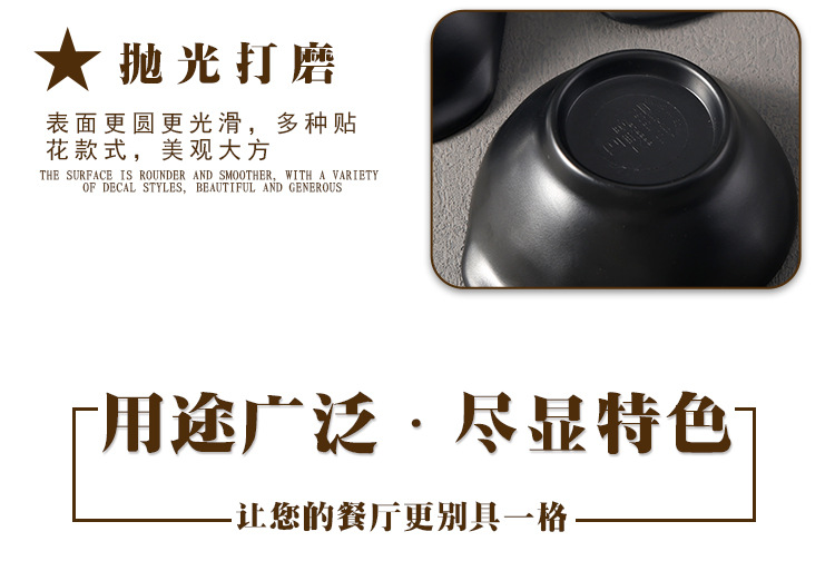 black melamine small bowl soup bowl hot pot restaurant commercial tableware frosted rice bowl plastic sauce seasoning bowl 中文版