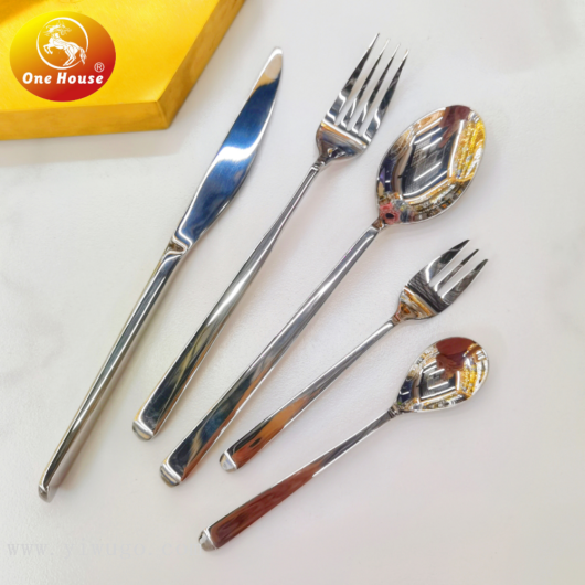One House 304 Stainless Steel Bright Small Square Handle Bevel Tail Knife, Fork and Spoon Small Spoon Fork Tableware