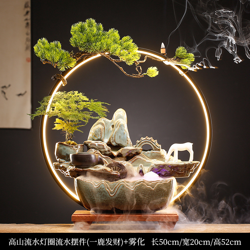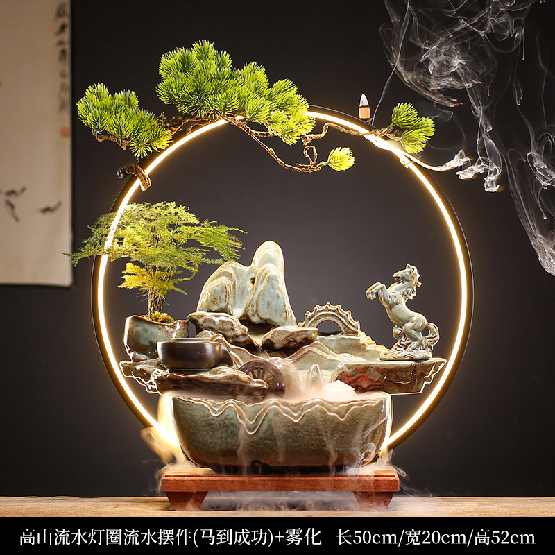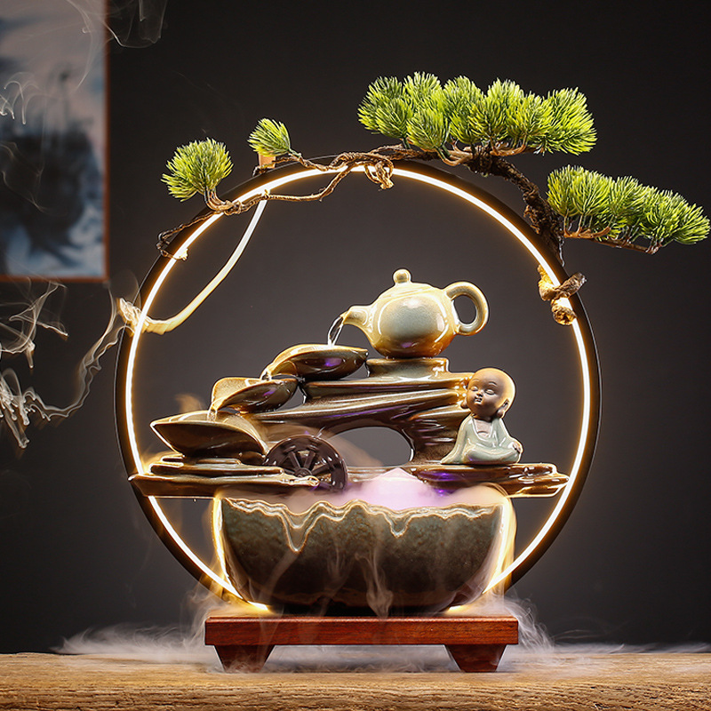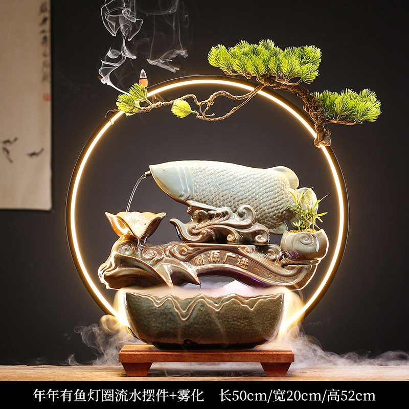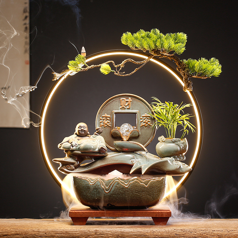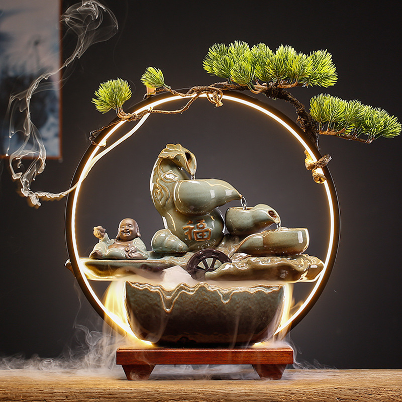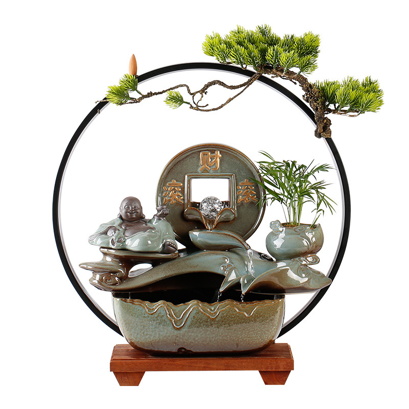 new chinese ceramic make a fortune as endless as flowing water circulation fountain decoration office living room desktop fish tank opening-up housewarming gifts 中文版