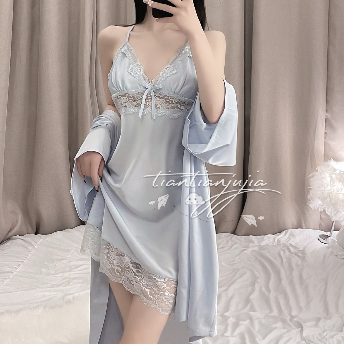 sky blue two-piece set: m