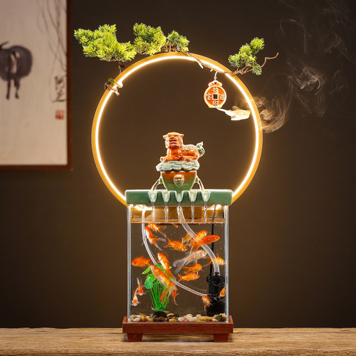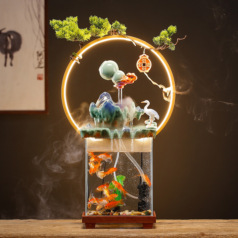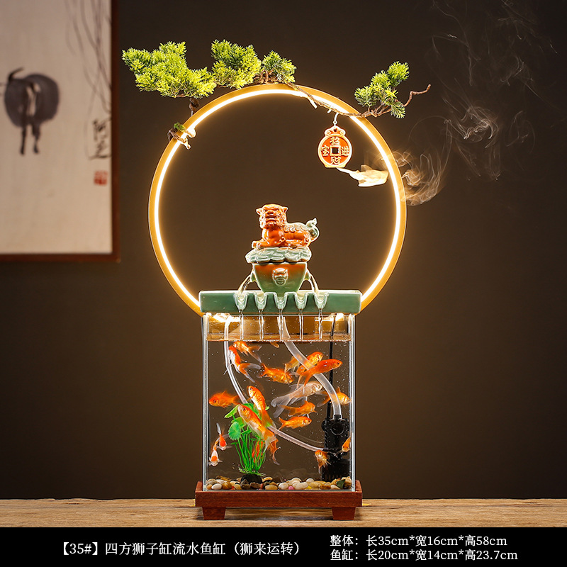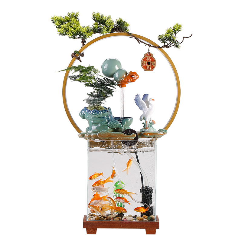 glass fish tank circulating water aeration filter three-in-one living room office desk surface panel decorative landscaping small aquarium 中文版