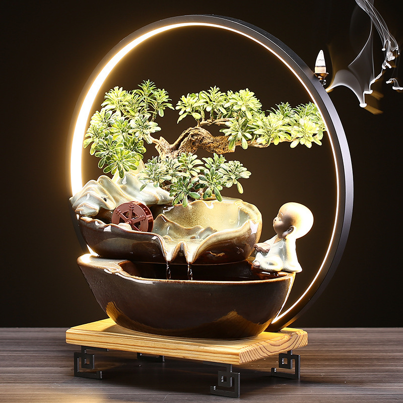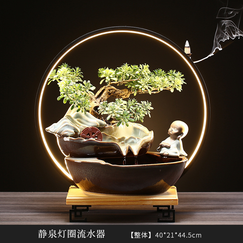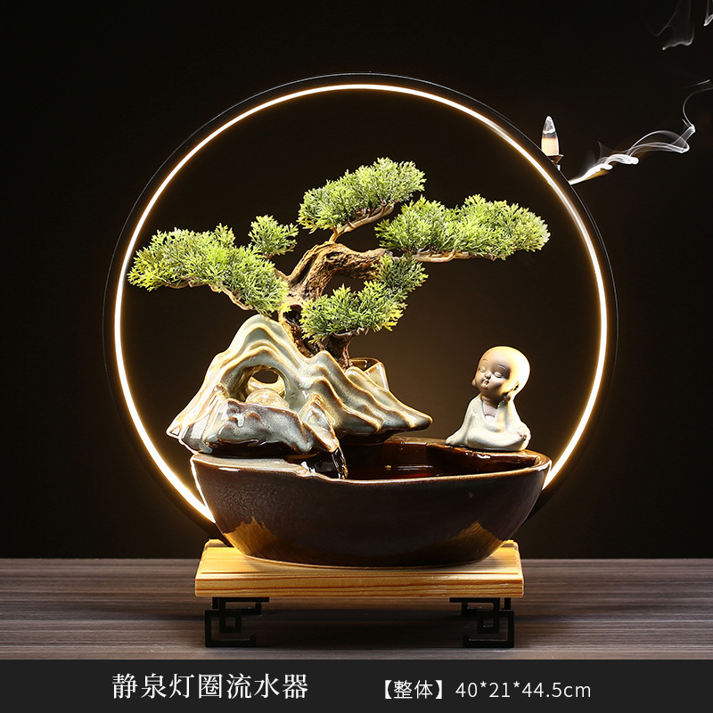 flowing water ornaments fountain backflow incense rockery desktop living room ceramics loop new chinese creative opening gift 中文版