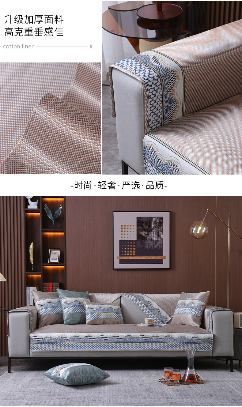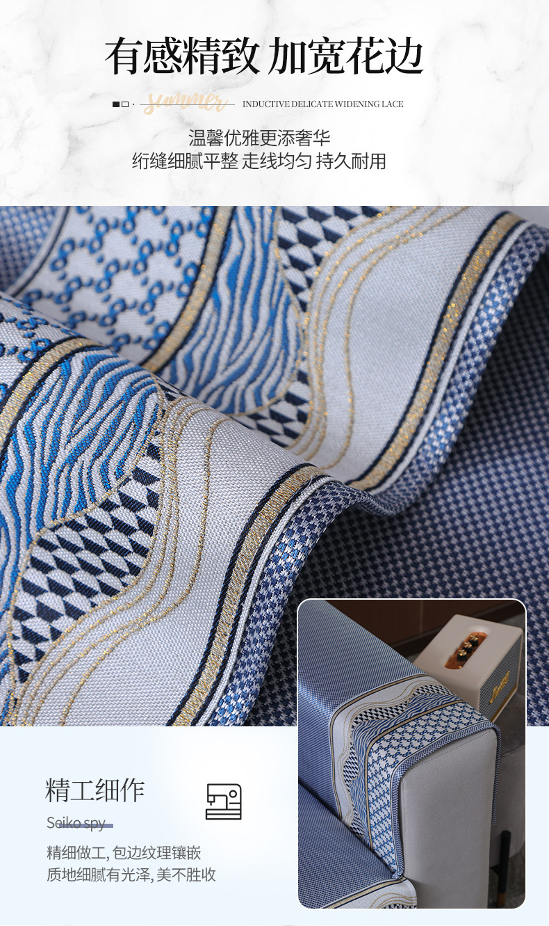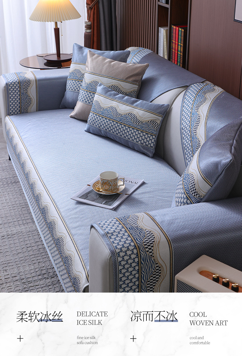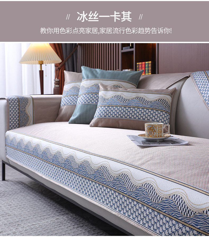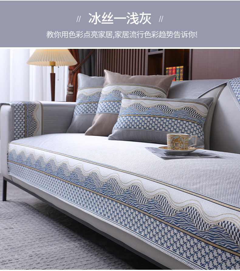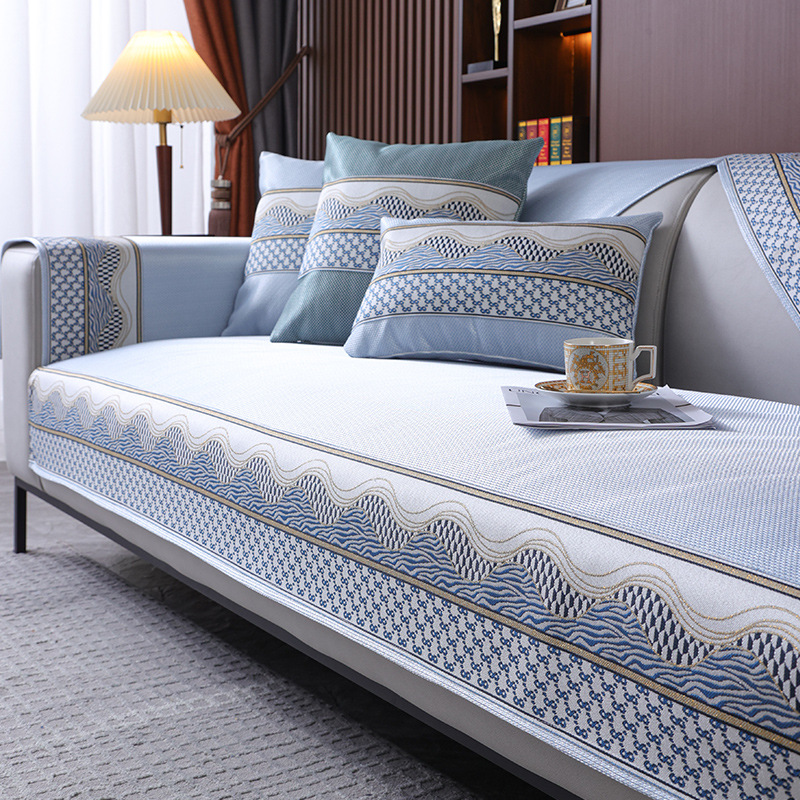 Ice Silk Sofa Cushion Summer Non-Slip Summer Sleeping Mat Ice Pad Light Luxury and Simplicity Leather Sofa Cushion Cover Towel Sand