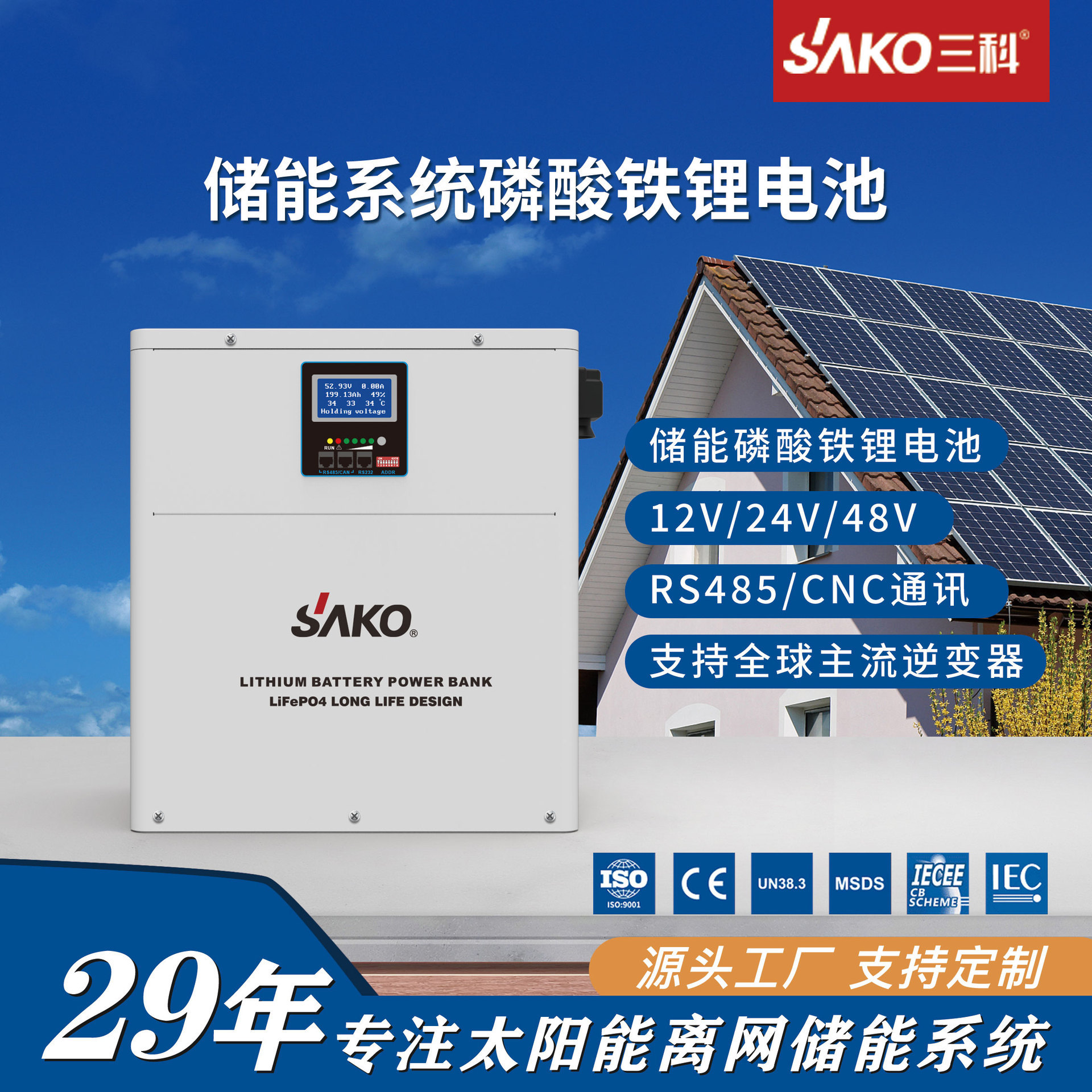 Optional for 5years warranty, 10 years life design, with cell cycles time up to 5000 times (Optional 5-year warranty, 8-10 years service life, cell cycles up to 5000 times)