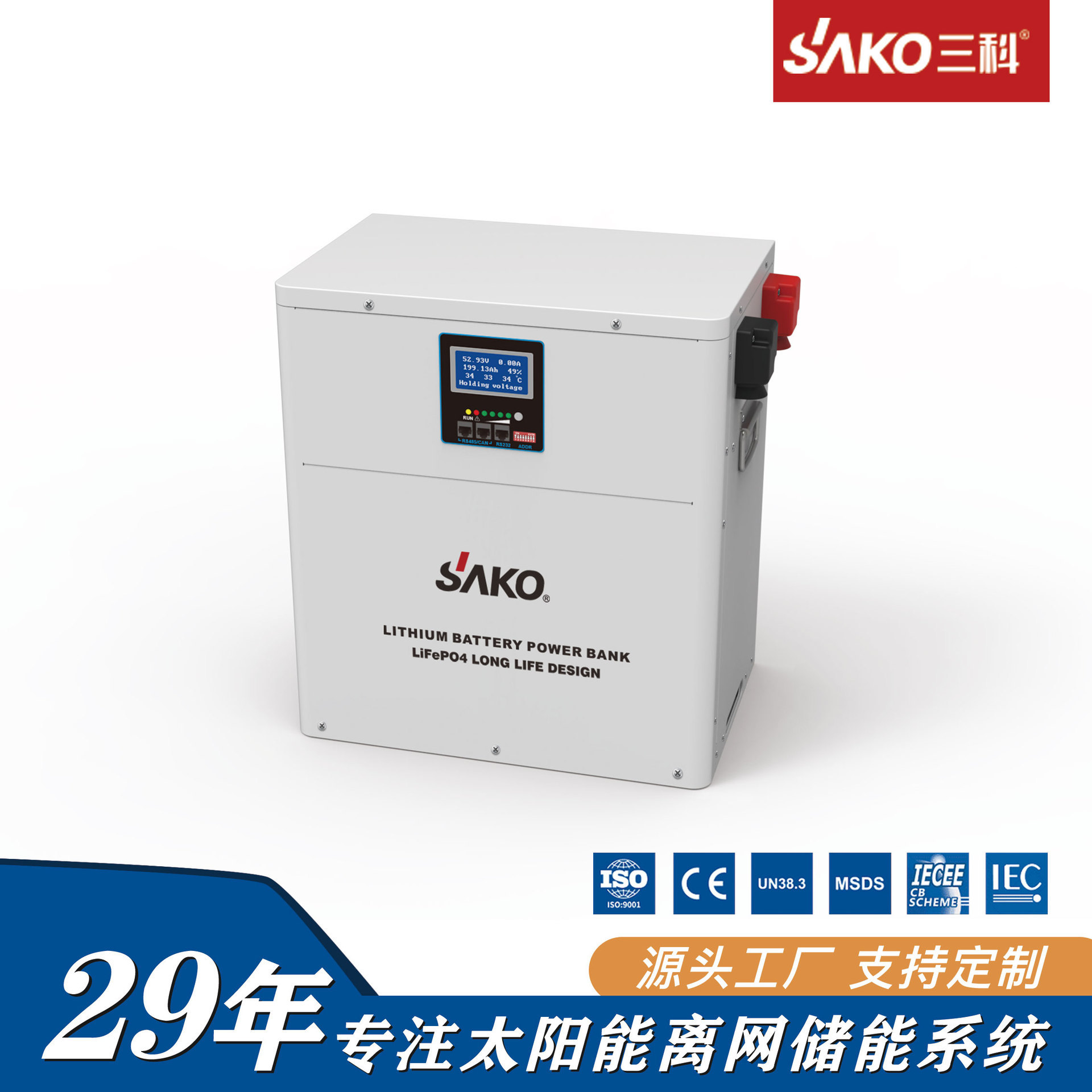All around protection and unattended operation (All-round protection and unattended work) Automatically output cut off after 30days no charge and discharge to ensure security, also can cut off output by manual operation (no charge and discharge within 30 will automatically cut off the output to ensure safety. CAN also be manually cut off) Optional for LCD display or communication (CAN or RS485)(Optional LCD screen and communication interface (CAN or RS485)